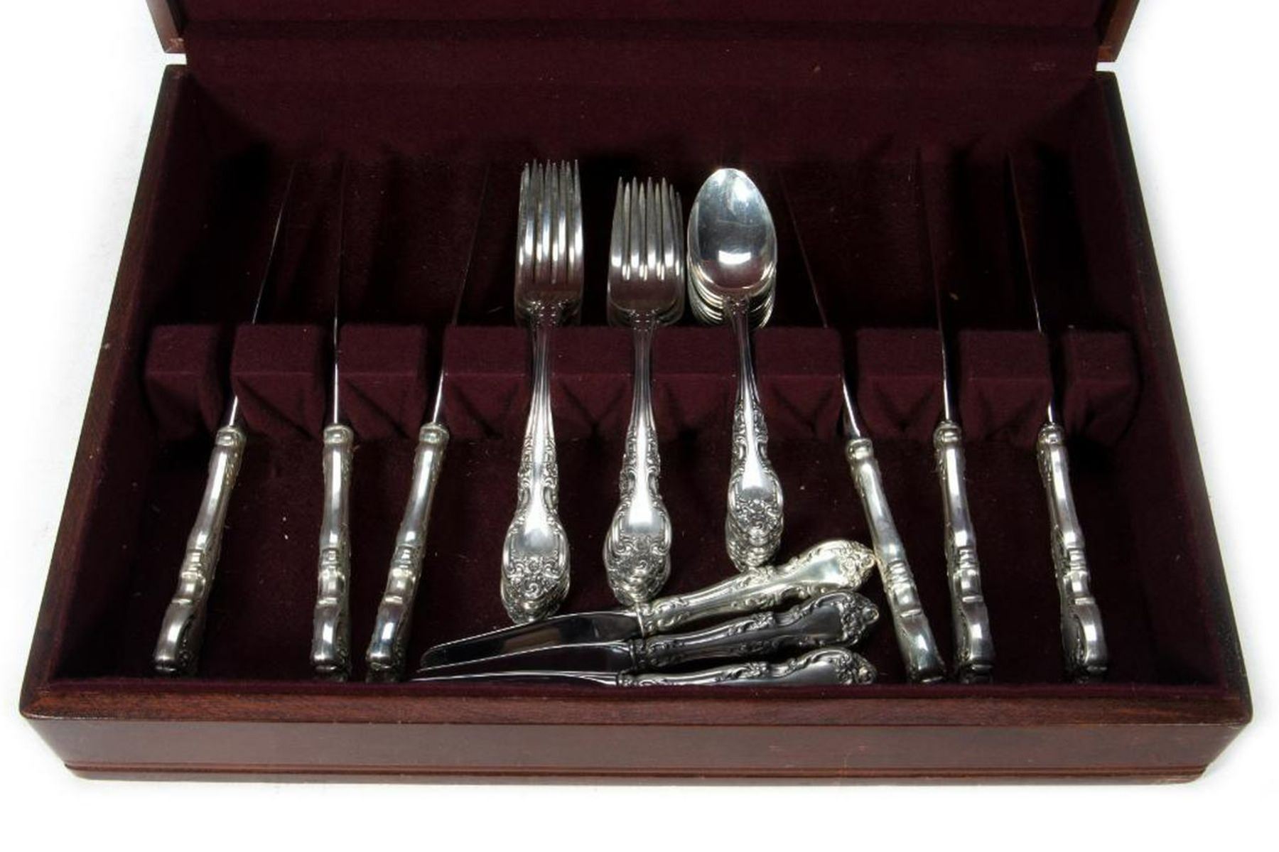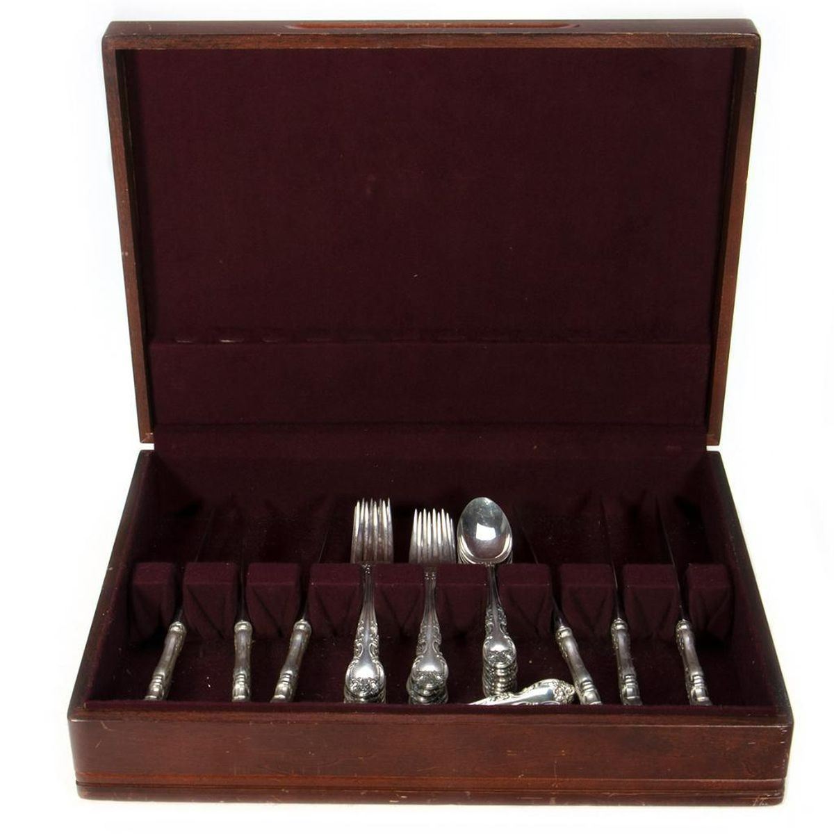 Melrose Pattern, comprising; Six Dinner knives, Six Dinner forks, Six Salad forks, Nine Teaspoons, and Five Butter spreaders. 32 pieces 1233 grams (approx.).