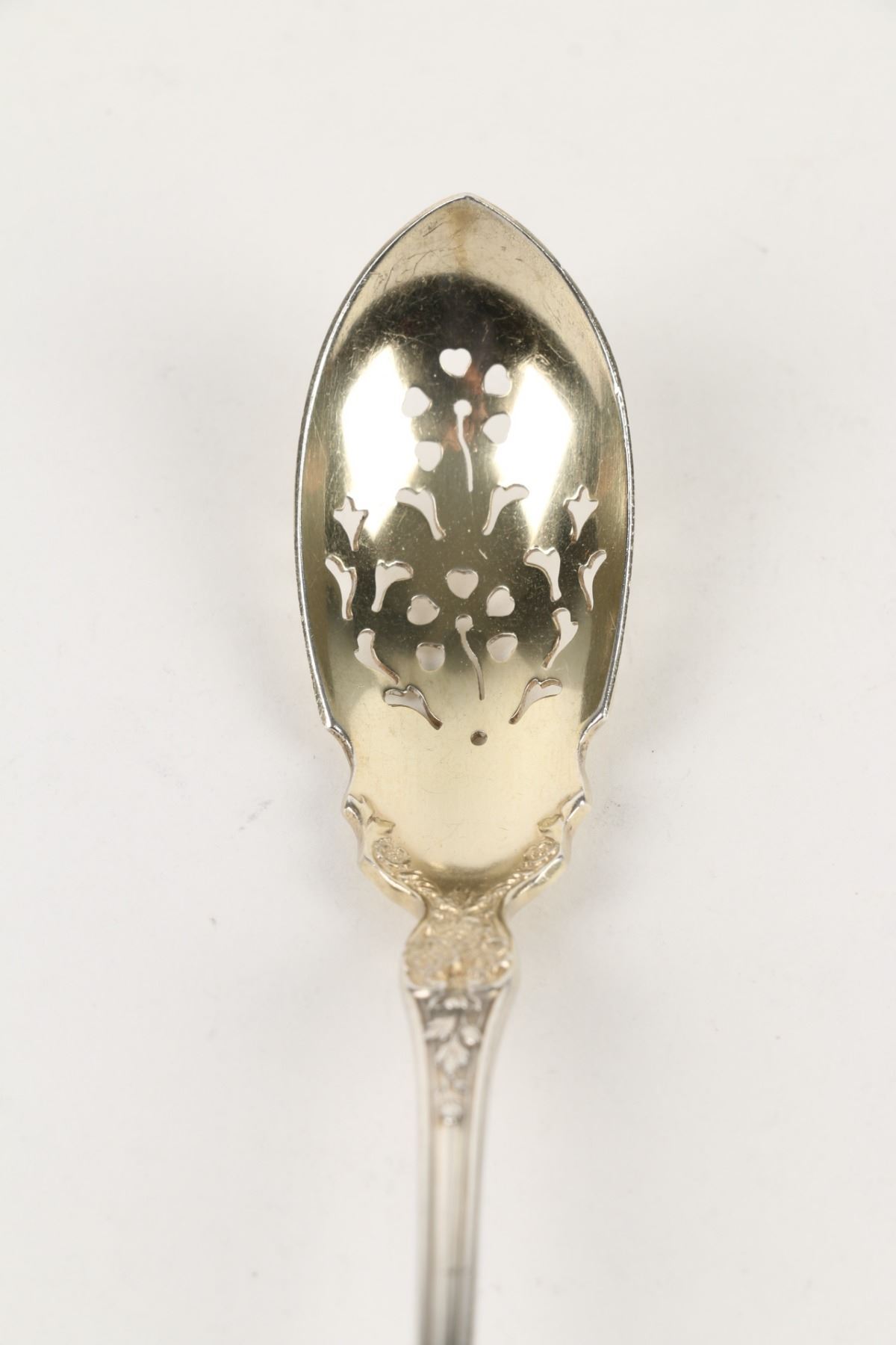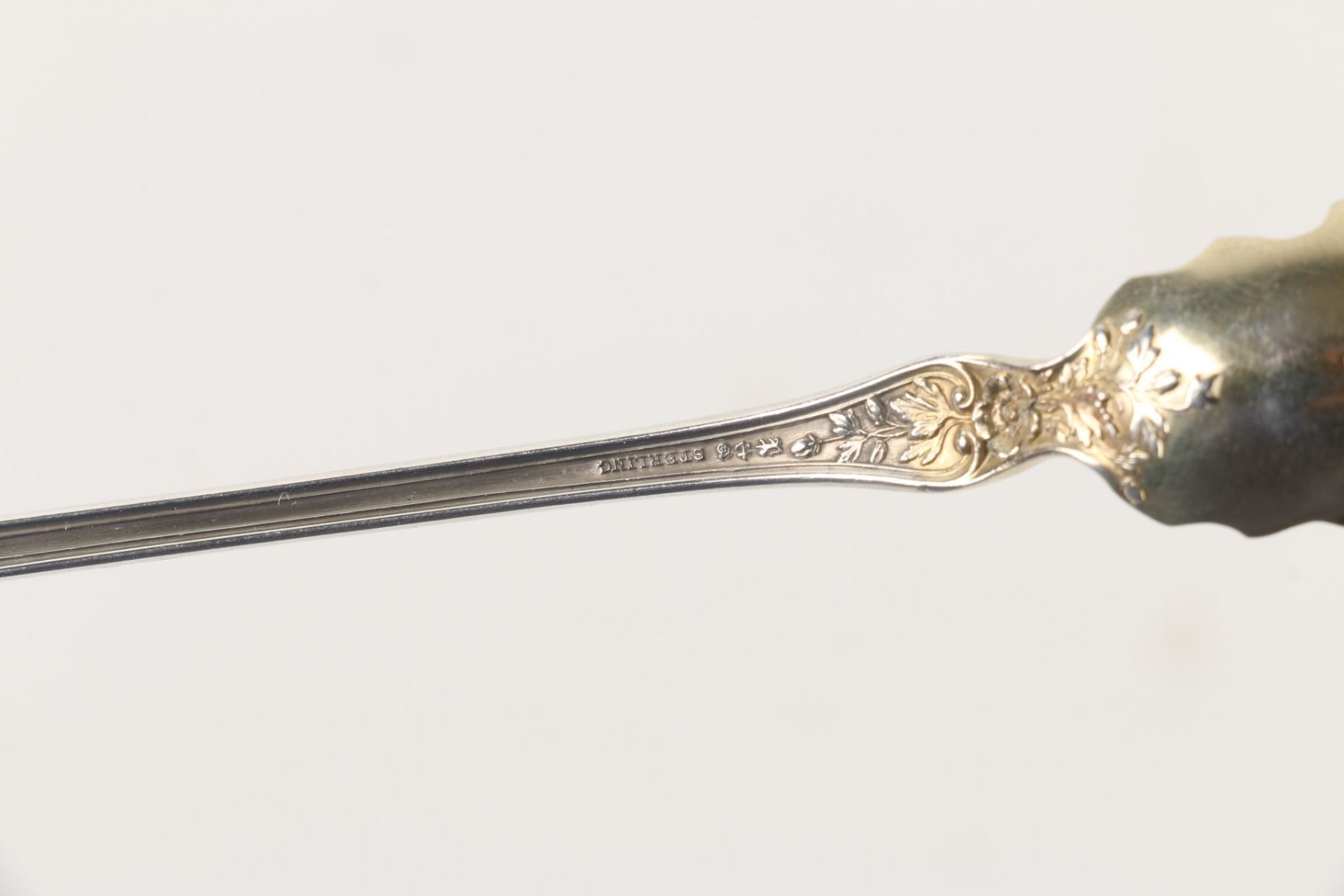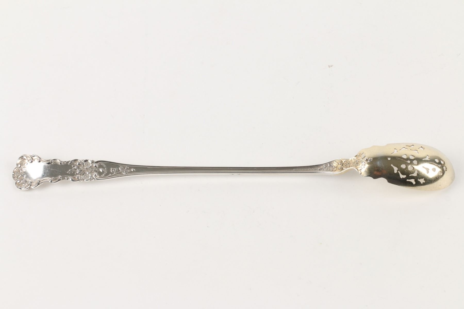 Lot 278 - Circa 1899. Long-handled olive serving spoon. Gold washed bowl. 8.5". Gross weight, 28g. $50-100.