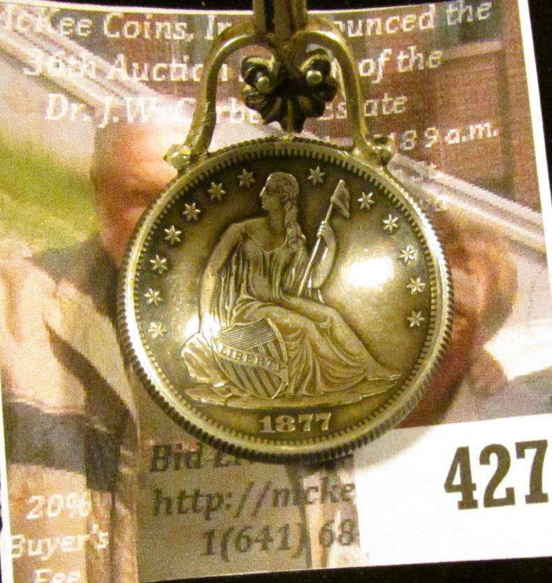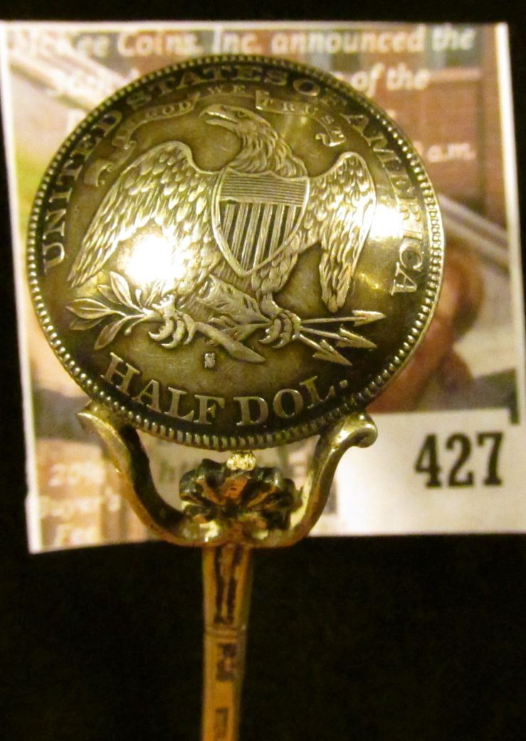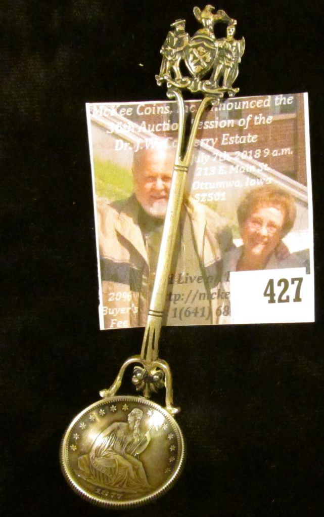 Gorham Sterling Silver spoon (marked sterling and hallmarked) featuring an 1877-S Seated Liberty Half Dollar. A similar piece sold on ebay for $282 on Feb 04 2018 (item # 162870645607). Scarce piece, bid accordingly.