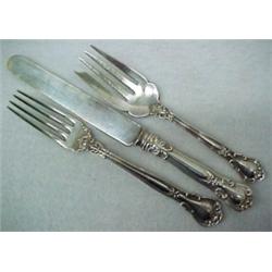 Gorham sterling silver partial flatware set "Chantilly" (1895) twenty three pieces including eleven 8 1/4" knives, eleven 7" knives, and a 6 1/2" fish fork, initialed M Estimate 140/200