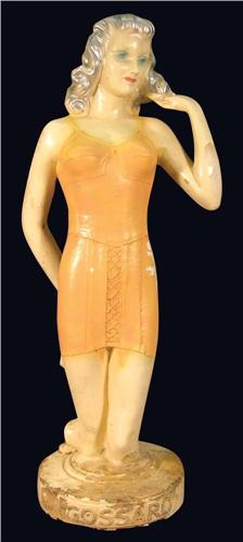 Gossard Girdle Chalk ware Store Display Figure. Some flaking paint otherwise good condition, 8 X 24 1/2 inches with base.