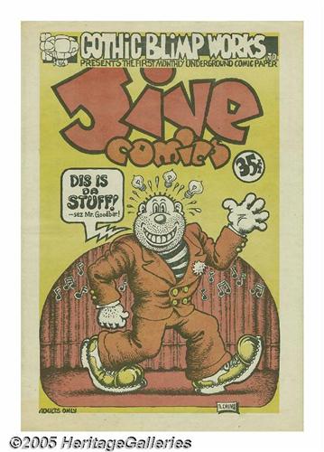 <B>Gothic Blimp Works #1 (East Village Other, 1969) Condition: VG/FN.</B></I> Here's the real jive on this particular item! This is the first issue of one of the best of the early Underground compilations, printed and distributed in New York in a tabloid format. Acting as editor was none other than cartoonist Vaughn Bode, whose work appears inside along with cover artist Robert Crumb, Jay Lynch, Spain Rodriguez, Art Spiegelman, Joel Beck, Kim Deitch, S. Clay Wilson, Larry Todd, and more -- a veritable who's who of the Underground! Distribution was scarce outside of the East Coast; as a result, all issues of <B>Gothic Blimp Works</B></I> have become very tough to come by. Most copies that survive have been folded and are quite ragged; this copy, while sustaining some edge wear (including a one inch tear in the right cover margin), is flat and fairly clean. As Mr. Goodbar says, "Dis is da stuff!"
