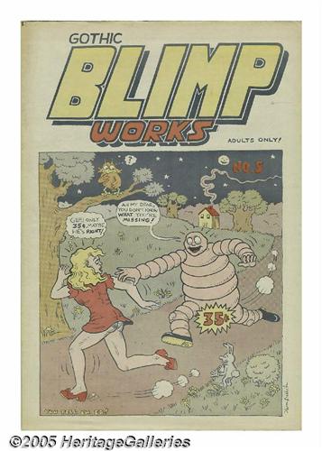 <B>Gothic Blimp Works #5 (East Village Other, 1969) Condition: VF-.</B></I> These <B>Gothic Blimp Works</B></I> are <I>so</B></I> hard to find! Especially when they look this nice! This is another copy that somehow managed to be stashed away unfolded, with only the tiniest amount of wear noticeable along the inside page edges. Artists include Kim Deitch (cover), Jay Lynch, Justin Green, Spain Rodriguez, Bill Griffith, Trina Robbins, and more.