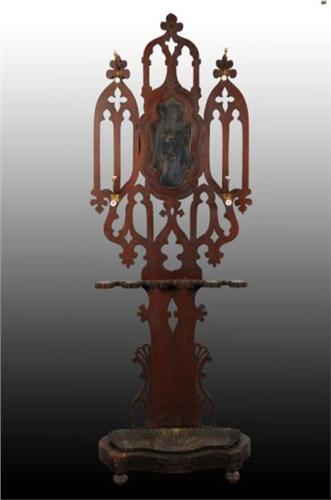 Description Walnut with metal base. Five holes for holding umbrellas. Missing three hooks. Furniture Category Condition (Excellent). Size 86" x 36".