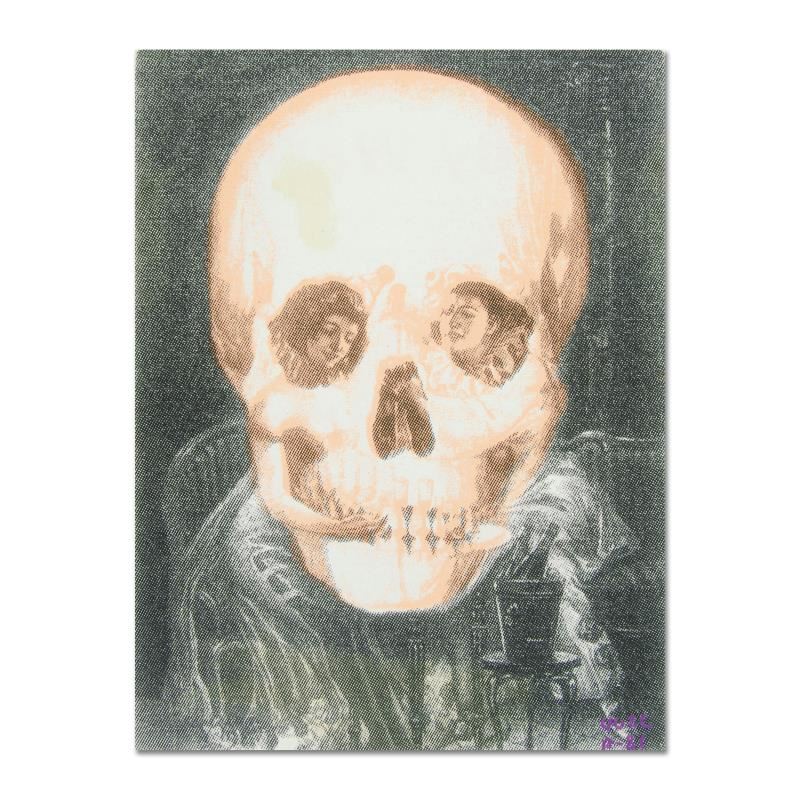 "Gothic Skull (Dali Homage)" is a one-of-a-kind hand-pulled silkscreen and mixed media painting on canvas by Ringo (Daniel Funes) - protege of Andy Warhol's apprentice, Steve Kaufman. This piece is hand signed by the artist and comes from the Andy Warhol Legacy Series. Includes Certificate of Authenticity. Due to the nature of the canvas these, pieces will need to be mounted for framing. Measures approx. 12" x 16" (image).
