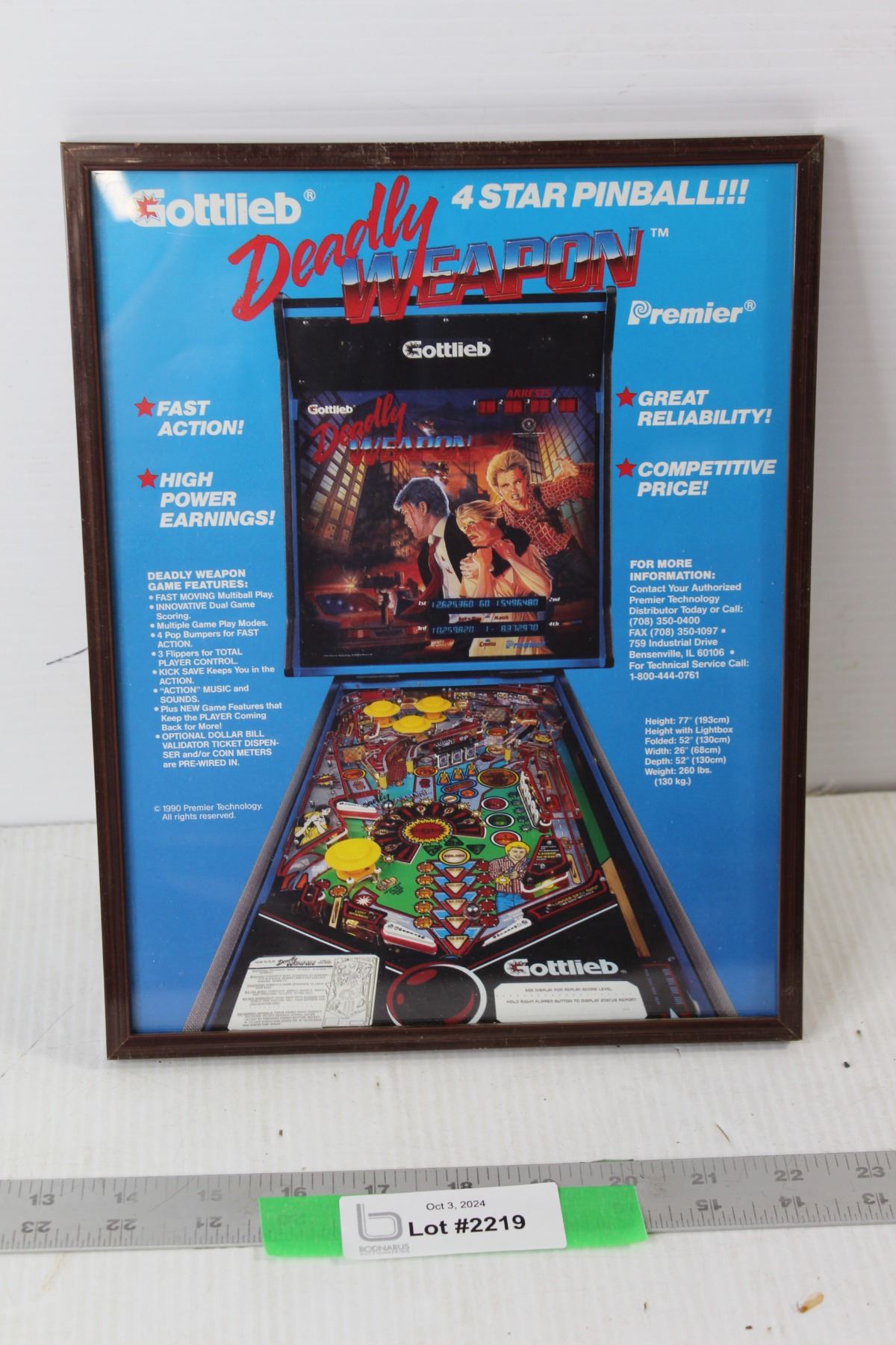 Gottlieb Deadly Weapon Framed Original Pinball Flyer - 8 3/4" x 11 1/2"