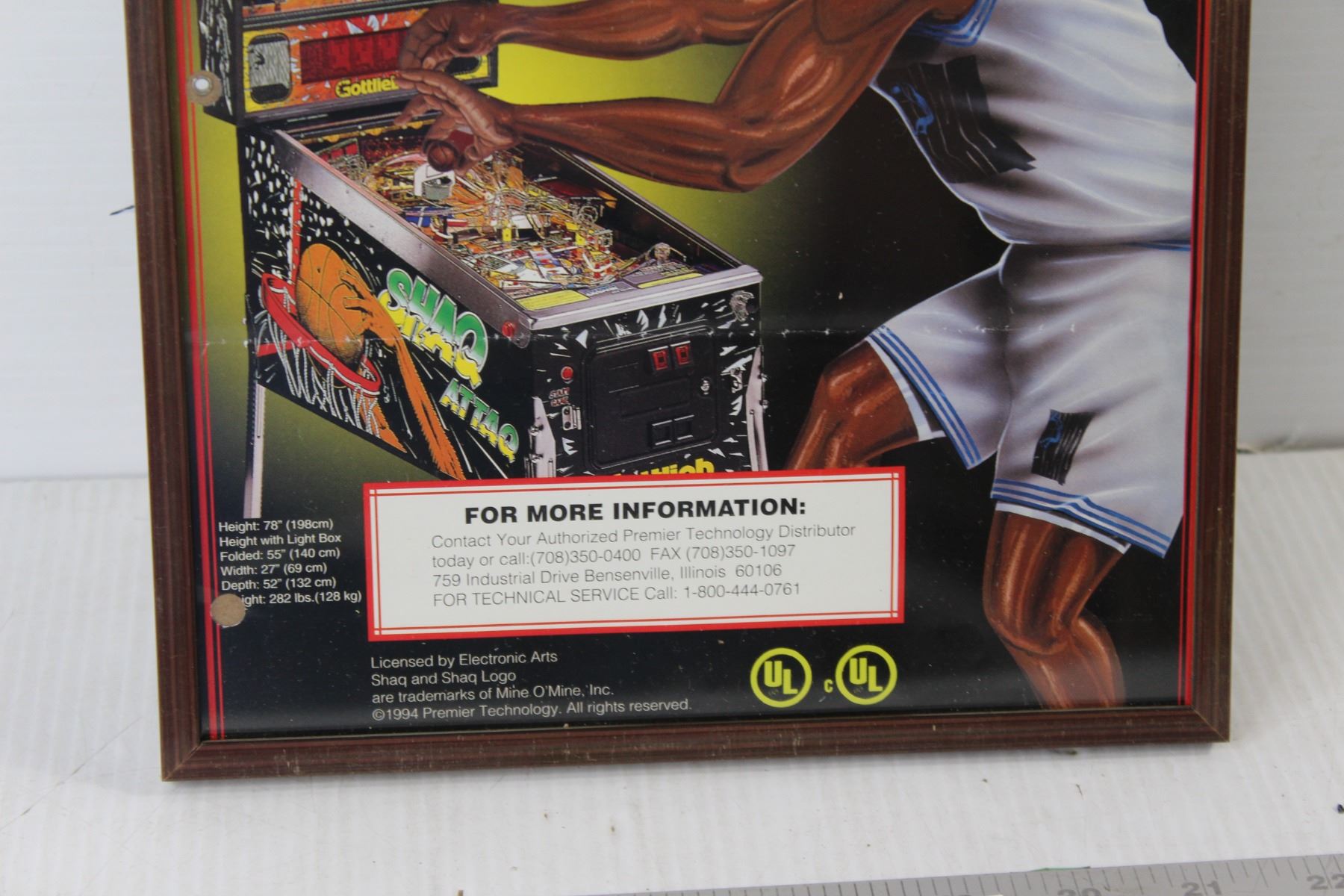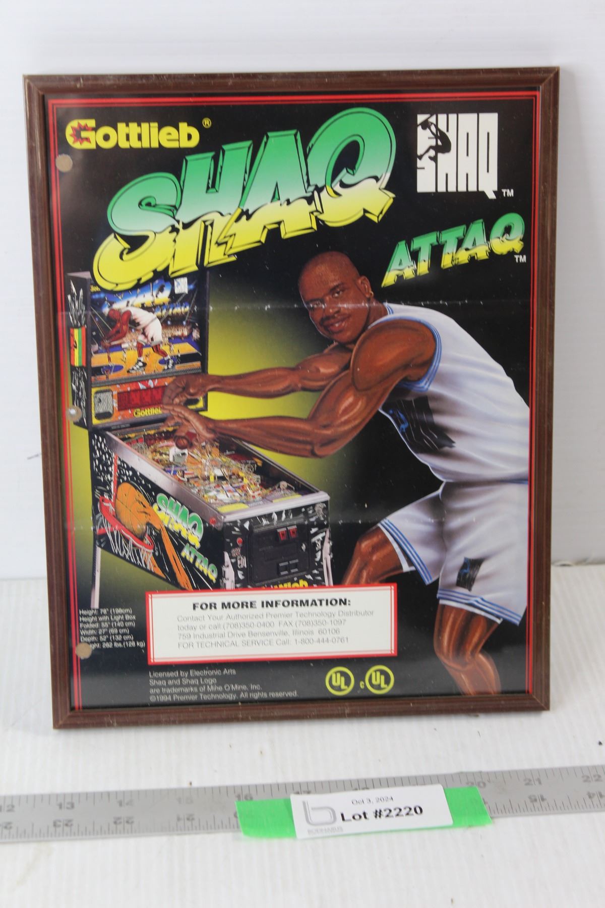 Gottlieb Shaq Attaq Framed Original Pinball Flyer - 8 3/4" x 11 1/2"