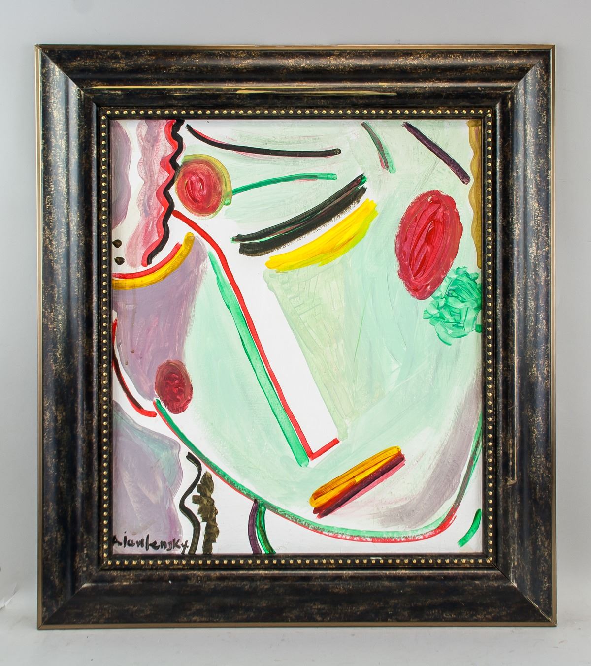 Gouache on paper, framed. Featuring an abstract head portrait. Signed A. Jawlensky on the lower left corner. 49 x 42 cm (19.3 x 16.5 inches), frame: 65 x 58 cm (25.6 x 22.8 inches). PROVENANCE: Southern Ontario estate