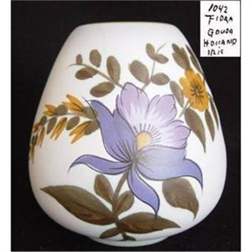 <p> Decorated with Purple and Orange flowers on a pale blue ground.