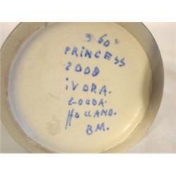 Gouda pottery vase with grape decoration marked 360 PRINCESS 2008 iVORA GOUDA HOLLAND BM on bottom. 6 1/2" tall.