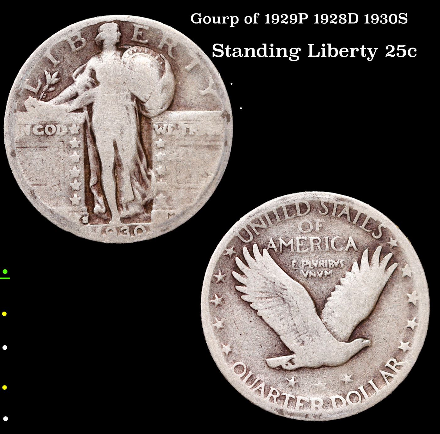 Gourp of 1929P 1928D 1930S Standing Liberty Quarter 25c.