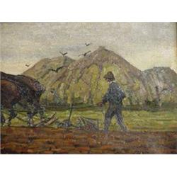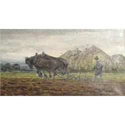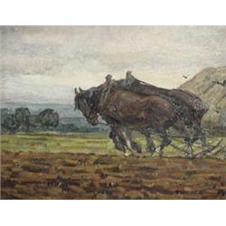 Gouwe, A.H. (1875-1965), canvas, Plowing horses, signed lower right, dated 1916, dim. 75 x 43 cm.