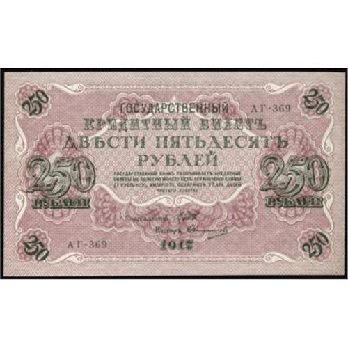 <style type="text/css"> body, td, th { font-family: Arial, Helvetica, sans-serif; font-size: 12px; color: #482424; margin: 0px; padding: 0px; } #header { background-image: url(http://www.bowersandmerena.com/ebay/images/template_v3_01.gif); clear: both; background-color: #590303; border-top-width: 2px; border-top-style: solid; border-top-color: #B38C4F; } #header #header_wrapper { height: 75px; clear: both; width: 800px; margin-right: auto; margin-left: auto; background-image: url(http://www.bowersandmerena.com/ebay/images/template_v3_03.gif); background-repeat: no-repeat; background-position: right; color: #F3EDCC; } #header #header_wrapper #header_logo { float: left; height: 75px; width: 444px; background-image: url(http://www.bowersandmerena.com/ebay/images/template_v3_02.gif); background-repeat: no-repeat; font-size: 10px; text-transform: capitalize; color: #B38C4F; } #header #header_wrapper #header_right { float: left; height: 75px; width: 356px; text-align: right; } #header #header_wrapper #header_right #headerLoginBtn { margin-bottom: 30px; } #header #header_wrapper #header_right input#txtSearch { color: #B49056; border: 1px solid #B49056; width: 175px; padding-top: 3px; padding-right: 3px; padding-bottom: 4px; padding-left: 3px; } #nav { height: 37px; background-image: url(http://www.bowersandmerena.com/ebay/images/template_v3_05.gif); clear: both; } #nav #nav_wrapper { height: 35px; width: 800px; margin-right: auto; margin-left: auto; border-left-width: 1px; border-left-style: solid; border-left-color: #B38C4F; } #nav #nav_wrapper a { padding-right: 15px; padding-left: 15px; border-right-width: 1px; border-right-style: solid; border-right-color: #B38C4F; height: 25px; padding-top: 10px; display: block; float: left; text-decoration: none; font-weight: bold; color: #5D0303; } #nav #nav_wrapper a:hover { color: #B38C4F; } #nav #nav_wrapper #search { float: right; padding-top: 7px; } #nav #nav_wrapper #search #txtSearch { font-family: Arial, Helvetica, sans-serif; font-size: 10px; text-transform: uppercase; color: #D2AE75; border: 1px solid #B38C4F; padding: 3px; } #content_bgd { background-image: url(http://www.bowersandmerena.com/ebay/images/template_v3_09.gif); background-repeat: repeat-y; background-position: center; padding-top: 15px; padding-bottom: 15px; background-color: #FBFBDB; } #content_wrapper { clear: both; height: auto; width: 800px; margin-right: auto; margin-left: auto; } .LotDetailWhite { line-height:normal; font-size:13px; font-family: arial,helvetica,sans-serif; color: White; font-weight: bold; } .LotDetailInformation { line-height:normal; font-size: 13px; font-family: arial,helvetica,sans-serif; } .LotDetailMessage { line-height:normal; font-size: 13px; font-family: arial,helvetica,sans-serif; color: red; } } tr.HeaderAuctionTitle td { color: #000000; font-weight: bold; padding: 2px; background-image: url(http://www.bowersandmerena.com/ebay/images/template_v3_05.gif); background-repeat: repeat-x; border-bottom-width: 1px; border-bottom-style: solid; border-bottom-color: #B38C4F; } table.AuctionSummary a, table.AuctionSummary a:link, table.AuctionSummary a:visited { color: #0000FF; text-decoration: none; } } td.tableHeaderLeft { border-left-width: 1px; border-left-style: solid; border-left-color: #B38C4F; } td.tableHeaderRight { border-right-width: 1px; border-right-style: solid; border-right-color: #B38C4F; } td.tableCellMiddle { border-left-width: 1px; border-left-style: solid; border-left-color: #B38C4F; border-right-width: 1px; border-right-style: solid; border-right-color: #B38C4F; padding: 5px; } tr.footer td { border-top-width: 1px; border-top-style: solid; border-top-color: #B38C4F; } </style> </head> <body> <div id="header"> <div id="header_wrapper"> <div id="header_logo"> </div> <div id="header_right"> </div> </div> </div> <div id="nav"> <div id="nav_wrapper"> <a href="http://www.bowersandmerena.com">Our eBayLive Auctions</a> <a href="#PaymentInfo">Payment Information</a> <a href="#ShippingInfo">Shipping Information</a> <a href="#About">About Bowers and Merena</a> </div> </div> <div id="content_bgd"> <div id="content_wrapper"> <table width="100%" border="0" cellpadding="5" cellspacing="0" class="AuctionSummary"> <tbody> <tr class="HeaderAuctionTitle" style="height: 25px;"> <td align="left" class="tableHeaderLeft" > </td> <td align="center" class="tableHeaderRight"> <span style="font-size: large;">Lot #2469. Provisional Government. Government Credit Notes, 1917 Issue.</span> </td> </tr> <tr> <td colspan="3" class="tableCellMiddle"> Lot of 14 notes with 9 to 11 different signature varieties. All are 1917, 250 Rubles, P-36 with Shipov signature and additional second signature. Condition varies from XF+ to CU.
