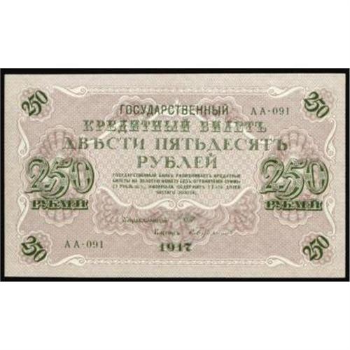 <style type="text/css"> body, td, th { font-family: Arial, Helvetica, sans-serif; font-size: 12px; color: #482424; margin: 0px; padding: 0px; } #header { background-image: url(http://www.bowersandmerena.com/ebay/images/template_v3_01.gif); clear: both; background-color: #590303; border-top-width: 2px; border-top-style: solid; border-top-color: #B38C4F; } #header #header_wrapper { height: 75px; clear: both; width: 800px; margin-right: auto; margin-left: auto; background-image: url(http://www.bowersandmerena.com/ebay/images/template_v3_03.gif); background-repeat: no-repeat; background-position: right; color: #F3EDCC; } #header #header_wrapper #header_logo { float: left; height: 75px; width: 444px; background-image: url(http://www.bowersandmerena.com/ebay/images/template_v3_02.gif); background-repeat: no-repeat; font-size: 10px; text-transform: capitalize; color: #B38C4F; } #header #header_wrapper #header_right { float: left; height: 75px; width: 356px; text-align: right; } #header #header_wrapper #header_right #headerLoginBtn { margin-bottom: 30px; } #header #header_wrapper #header_right input#txtSearch { color: #B49056; border: 1px solid #B49056; width: 175px; padding-top: 3px; padding-right: 3px; padding-bottom: 4px; padding-left: 3px; } #nav { height: 37px; background-image: url(http://www.bowersandmerena.com/ebay/images/template_v3_05.gif); clear: both; } #nav #nav_wrapper { height: 35px; width: 800px; margin-right: auto; margin-left: auto; border-left-width: 1px; border-left-style: solid; border-left-color: #B38C4F; } #nav #nav_wrapper a { padding-right: 15px; padding-left: 15px; border-right-width: 1px; border-right-style: solid; border-right-color: #B38C4F; height: 25px; padding-top: 10px; display: block; float: left; text-decoration: none; font-weight: bold; color: #5D0303; } #nav #nav_wrapper a:hover { color: #B38C4F; } #nav #nav_wrapper #search { float: right; padding-top: 7px; } #nav #nav_wrapper #search #txtSearch { font-family: Arial, Helvetica, sans-serif; font-size: 10px; text-transform: uppercase; color: #D2AE75; border: 1px solid #B38C4F; padding: 3px; } #content_bgd { background-image: url(http://www.bowersandmerena.com/ebay/images/template_v3_09.gif); background-repeat: repeat-y; background-position: center; padding-top: 15px; padding-bottom: 15px; background-color: #FBFBDB; } #content_wrapper { clear: both; height: auto; width: 800px; margin-right: auto; margin-left: auto; } .LotDetailWhite { line-height:normal; font-size:13px; font-family: arial,helvetica,sans-serif; color: White; font-weight: bold; } .LotDetailInformation { line-height:normal; font-size: 13px; font-family: arial,helvetica,sans-serif; } .LotDetailMessage { line-height:normal; font-size: 13px; font-family: arial,helvetica,sans-serif; color: red; } } tr.HeaderAuctionTitle td { color: #000000; font-weight: bold; padding: 2px; background-image: url(http://www.bowersandmerena.com/ebay/images/template_v3_05.gif); background-repeat: repeat-x; border-bottom-width: 1px; border-bottom-style: solid; border-bottom-color: #B38C4F; } table.AuctionSummary a, table.AuctionSummary a:link, table.AuctionSummary a:visited { color: #0000FF; text-decoration: none; } } td.tableHeaderLeft { border-left-width: 1px; border-left-style: solid; border-left-color: #B38C4F; } td.tableHeaderRight { border-right-width: 1px; border-right-style: solid; border-right-color: #B38C4F; } td.tableCellMiddle { border-left-width: 1px; border-left-style: solid; border-left-color: #B38C4F; border-right-width: 1px; border-right-style: solid; border-right-color: #B38C4F; padding: 5px; } tr.footer td { border-top-width: 1px; border-top-style: solid; border-top-color: #B38C4F; } </style> </head> <body> <div id="header"> <div id="header_wrapper"> <div id="header_logo"> </div> <div id="header_right"> </div> </div> </div> <div id="nav"> <div id="nav_wrapper"> <a href="http://www.bowersandmerena.com">Our eBayLive Auctions</a> <a href="#PaymentInfo">Payment Information</a> <a href="#ShippingInfo">Shipping Information</a> <a href="#About">About Bowers and Merena</a> </div> </div> <div id="content_bgd"> <div id="content_wrapper"> <table width="100%" border="0" cellpadding="5" cellspacing="0" class="AuctionSummary"> <tbody> <tr class="HeaderAuctionTitle" style="height: 25px;"> <td align="left" class="tableHeaderLeft" > </td> <td align="center" class="tableHeaderRight"> <span style="font-size: large;">Lot #2470. Provisional Government. Government Credit Notes, 1917 Issue.</span> </td> </tr> <tr> <td colspan="3" class="tableCellMiddle"> Lot of 10 notes, all with Shipov signatures and with 8 to 9 different additional second signature varieties. All are 1917, 250 Rubles, P-36. Condition varies from XF+ to CU.