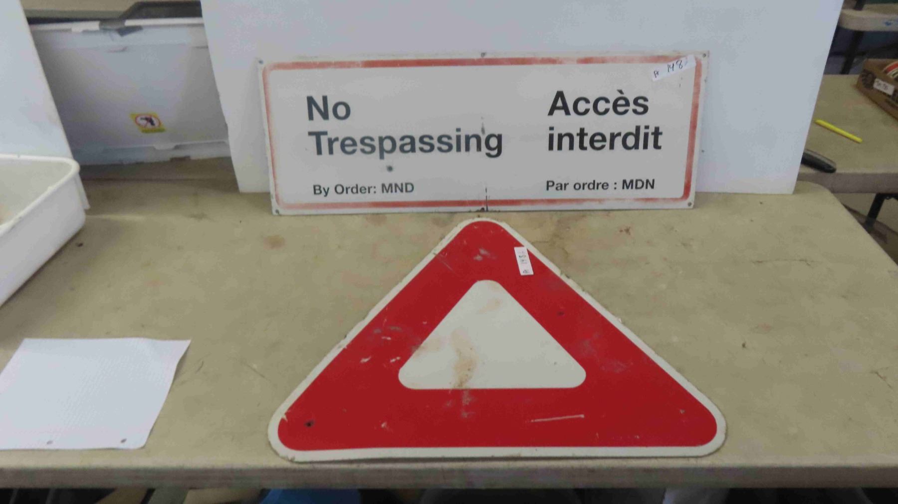 Government 'No Trespassing' Metal Sign 35'' x 13'', Traffic 'Yield' Sign 23'' x 26''
