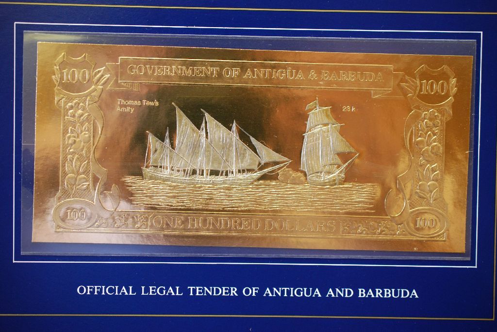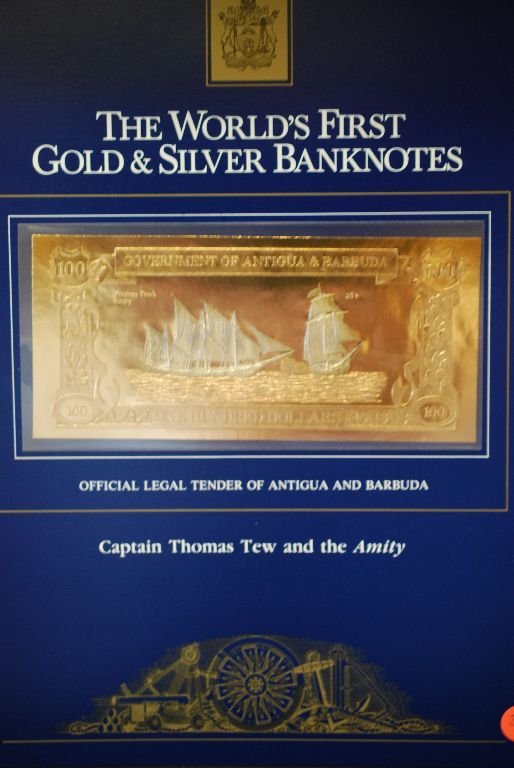 Government Of Antigua & Barbuda $100 Foreign Bank Note; Capt'n Thomas Tew & The Amity; The World's First Gold & Silver Banknotes; EST. $5-10