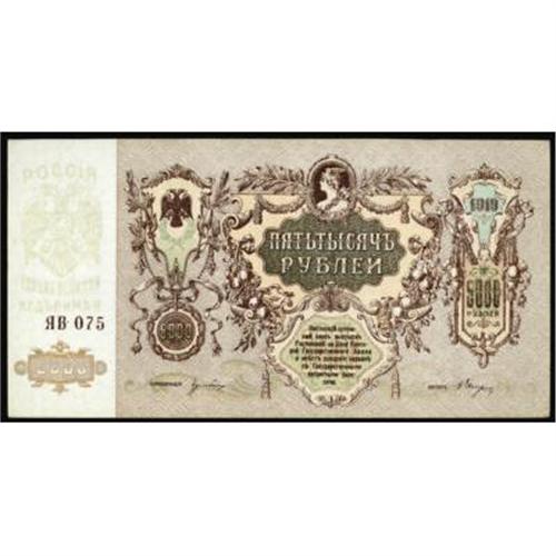<style type="text/css"> body, td, th { font-family: Arial, Helvetica, sans-serif; font-size: 12px; color: #482424; margin: 0px; padding: 0px; } #header { background-image: url(http://www.bowersandmerena.com/ebay/images/template_v3_01.gif); clear: both; background-color: #590303; border-top-width: 2px; border-top-style: solid; border-top-color: #B38C4F; } #header #header_wrapper { height: 75px; clear: both; width: 800px; margin-right: auto; margin-left: auto; background-image: url(http://www.bowersandmerena.com/ebay/images/template_v3_03.gif); background-repeat: no-repeat; background-position: right; color: #F3EDCC; } #header #header_wrapper #header_logo { float: left; height: 75px; width: 444px; background-image: url(http://www.bowersandmerena.com/ebay/images/template_v3_02.gif); background-repeat: no-repeat; font-size: 10px; text-transform: capitalize; color: #B38C4F; } #header #header_wrapper #header_right { float: left; height: 75px; width: 356px; text-align: right; } #header #header_wrapper #header_right #headerLoginBtn { margin-bottom: 30px; } #header #header_wrapper #header_right input#txtSearch { color: #B49056; border: 1px solid #B49056; width: 175px; padding-top: 3px; padding-right: 3px; padding-bottom: 4px; padding-left: 3px; } #nav { height: 37px; background-image: url(http://www.bowersandmerena.com/ebay/images/template_v3_05.gif); clear: both; } #nav #nav_wrapper { height: 35px; width: 800px; margin-right: auto; margin-left: auto; border-left-width: 1px; border-left-style: solid; border-left-color: #B38C4F; } #nav #nav_wrapper a { padding-right: 15px; padding-left: 15px; border-right-width: 1px; border-right-style: solid; border-right-color: #B38C4F; height: 25px; padding-top: 10px; display: block; float: left; text-decoration: none; font-weight: bold; color: #5D0303; } #nav #nav_wrapper a:hover { color: #B38C4F; } #nav #nav_wrapper #search { float: right; padding-top: 7px; } #nav #nav_wrapper #search #txtSearch { font-family: Arial, Helvetica, sans-serif; font-size: 10px; text-transform: uppercase; color: #D2AE75; border: 1px solid #B38C4F; padding: 3px; } #content_bgd { background-image: url(http://www.bowersandmerena.com/ebay/images/template_v3_09.gif); background-repeat: repeat-y; background-position: center; padding-top: 15px; padding-bottom: 15px; background-color: #FBFBDB; } #content_wrapper { clear: both; height: auto; width: 800px; margin-right: auto; margin-left: auto; } .LotDetailWhite { line-height:normal; font-size:13px; font-family: arial,helvetica,sans-serif; color: White; font-weight: bold; } .LotDetailInformation { line-height:normal; font-size: 13px; font-family: arial,helvetica,sans-serif; } .LotDetailMessage { line-height:normal; font-size: 13px; font-family: arial,helvetica,sans-serif; color: red; } } tr.HeaderAuctionTitle td { color: #000000; font-weight: bold; padding: 2px; background-image: url(http://www.bowersandmerena.com/ebay/images/template_v3_05.gif); background-repeat: repeat-x; border-bottom-width: 1px; border-bottom-style: solid; border-bottom-color: #B38C4F; } table.AuctionSummary a, table.AuctionSummary a:link, table.AuctionSummary a:visited { color: #0000FF; text-decoration: none; } } td.tableHeaderLeft { border-left-width: 1px; border-left-style: solid; border-left-color: #B38C4F; } td.tableHeaderRight { border-right-width: 1px; border-right-style: solid; border-right-color: #B38C4F; } td.tableCellMiddle { border-left-width: 1px; border-left-style: solid; border-left-color: #B38C4F; border-right-width: 1px; border-right-style: solid; border-right-color: #B38C4F; padding: 5px; } tr.footer td { border-top-width: 1px; border-top-style: solid; border-top-color: #B38C4F; } </style> </head> <body> <div id="header"> <div id="header_wrapper"> <div id="header_logo"> </div> <div id="header_right"> </div> </div> </div> <div id="nav"> <div id="nav_wrapper"> <a href="http://www.bowersandmerena.com">Our eBayLive Auctions</a> <a href="#PaymentInfo">Payment Information</a> <a href="#ShippingInfo">Shipping Information</a> <a href="#About">About Bowers and Merena</a> </div> </div> <div id="content_bgd"> <div id="content_wrapper"> <table width="100%" border="0" cellpadding="5" cellspacing="0" class="AuctionSummary"> <tbody> <tr class="HeaderAuctionTitle" style="height: 25px;"> <td align="left" class="tableHeaderLeft" > </td> <td align="center" class="tableHeaderRight"> <span style="font-size: large;">Lot #2085. South Russia. Government Treasury Notes 1919 Issue.</span> </td> </tr> <tr> <td colspan="3" class="tableCellMiddle"> Lot of 4 different color, series and watermark varieties of the 5000 Rubles, P-S419. Condition varies between AU to CU.