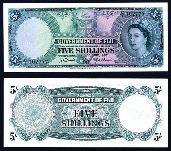 Fiji, issued note, 5 Shillings, 1957, P-51a, UNC.