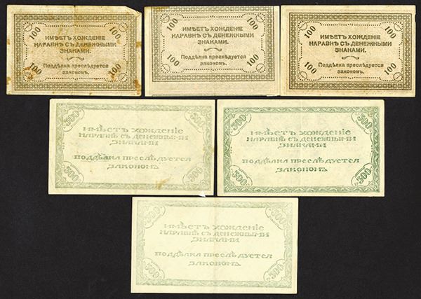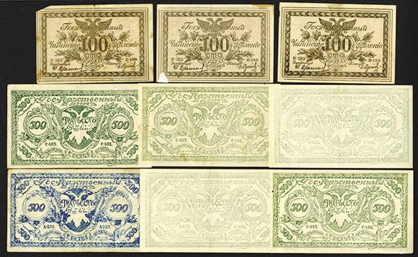 Russia, Lot of 9 notes, Includes 100 Rubles (3), P-S1187b, VF to AU and 500 Rubles (6), P-S1188, Various shades, VF to Unc. Attractive assortment.