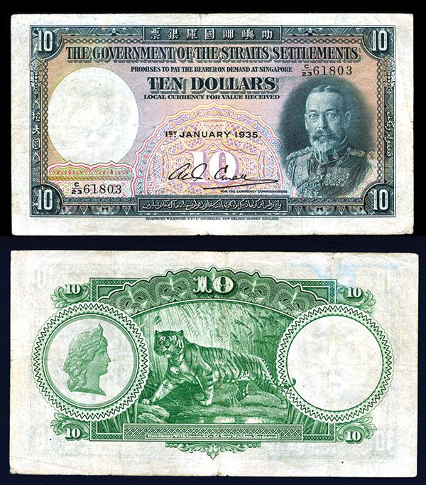 Government of the Straits Settlements, 1935 Issued Banknote.
