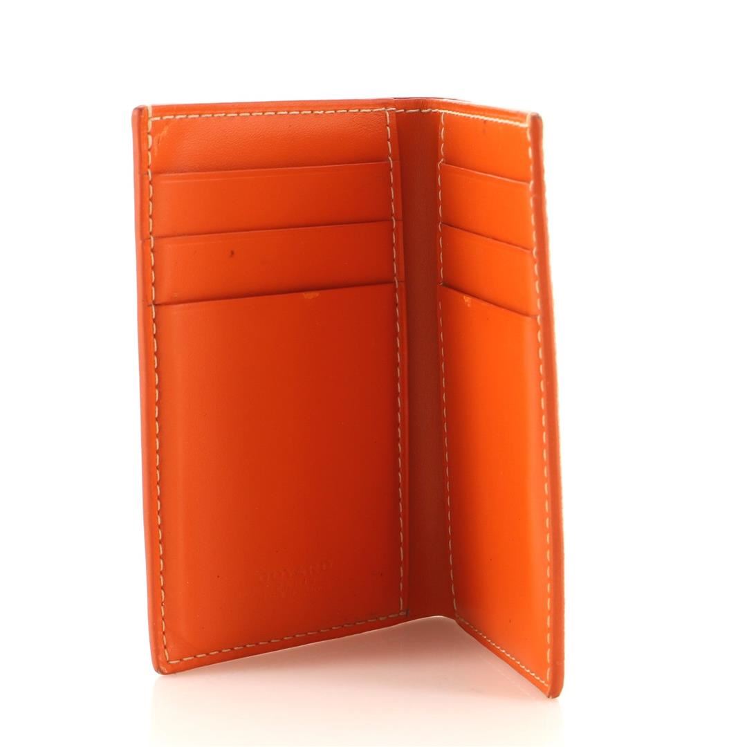 Goyard Orange Coated Canvas Saint Pierre Card Case Condition Details: Wear and stickiness on exterior, heavy spitting, cracking and peeling on base and opening corner wax edges, moderate wear, darkening and marks in interior. Measurements: Height 4.