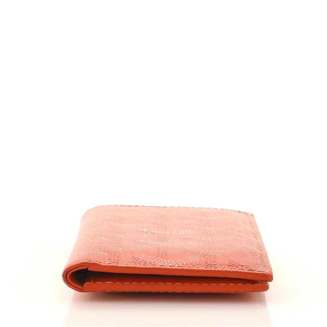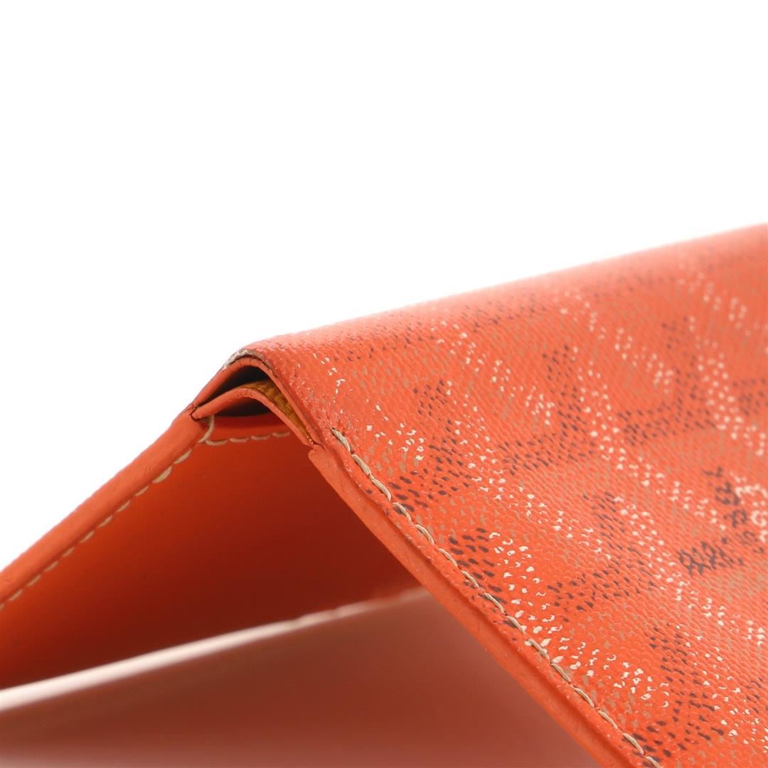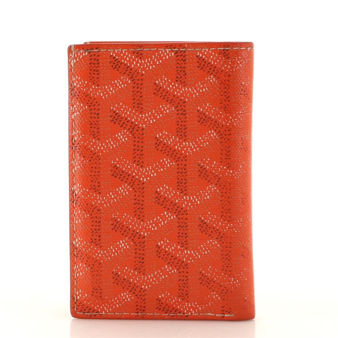 Goyard Orange Coated Canvas Saint Pierre Card Case Condition Details: Wear and stickiness on exterior, heavy spitting, cracking and peeling on base and opening corner wax edges, moderate wear, darkening and marks in interior. Measurements: Height 4.