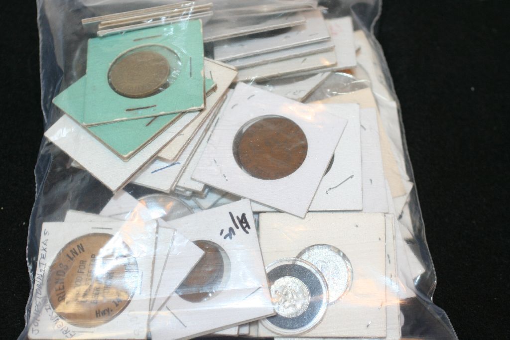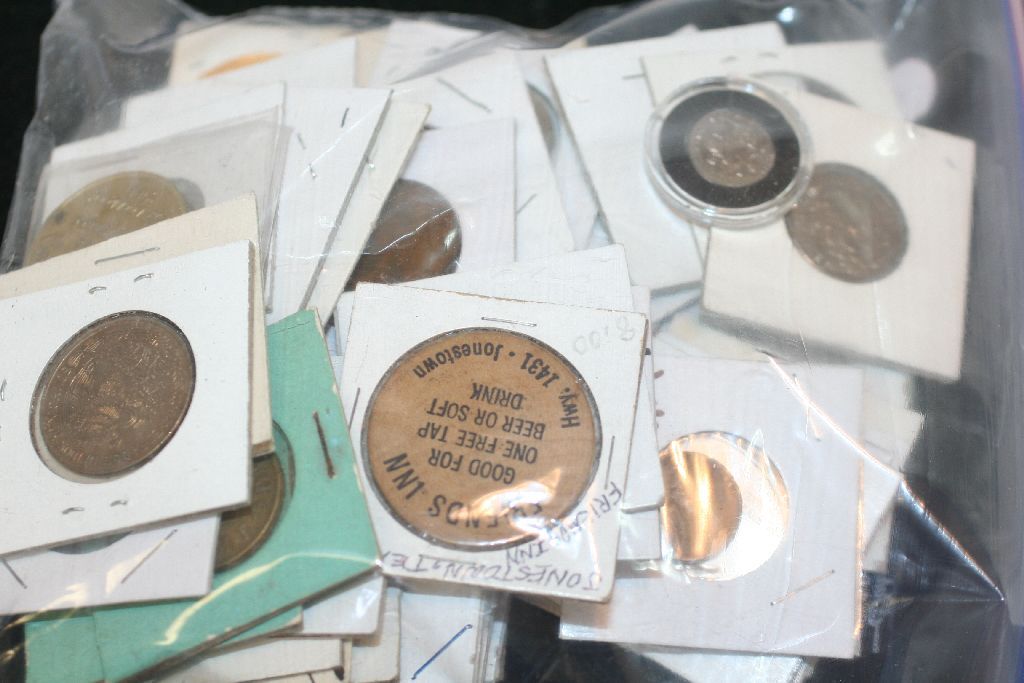 Grab Bag of US Coin, Foreign Coin, Token, Wooden Nickel, Etc., Various Dates & Conditions, Lot of 60