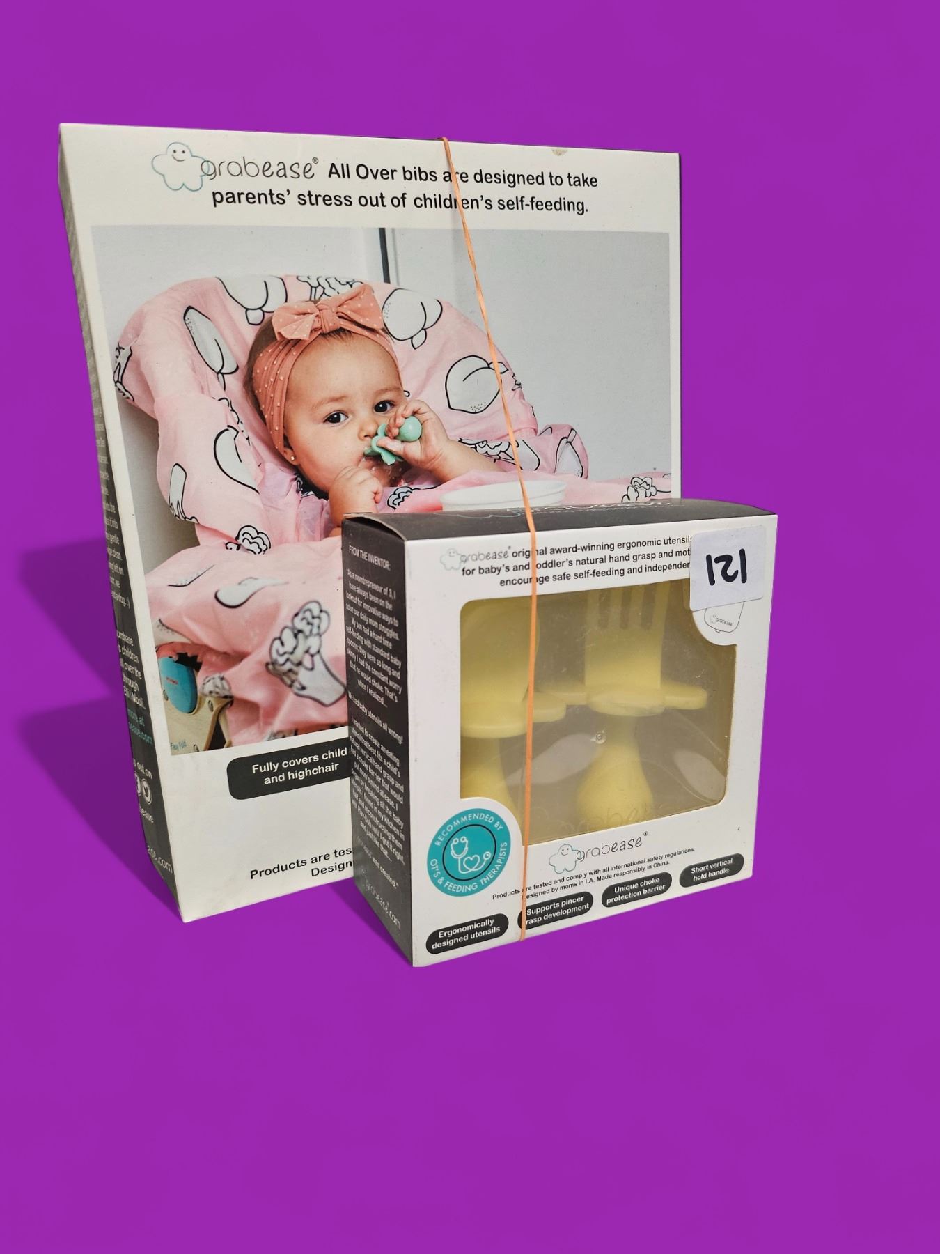 One Grabease All over Bib and One Grabease Toddle Utensils set