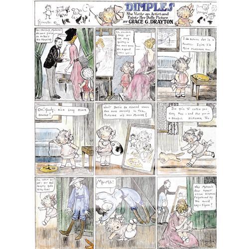 <B>Grace G. Drayton - Dolly Dimples Hand Colored Sunday Comic Strip Original Art (Grace G. Drayton, 1914).</B></I> Grace Drayton was one of the first successful female illustrators, and her work was regularly published in <B>The Ladies Home Journal</B></I>. This exceptional Sunday was hand-colored by the artist, and was included in "The Sunday Funnies -- 100 years of Comics in American Life" exhibit at the Barnum Museum. It is also featured on page 19 of the exhibition catalog (a copy of which is included in this lot). The image area measures approximately 16.5" x 21", and is in Excellent condition.<BR><BR><b>Shipping:</b> Framed (<a target="_blank" href="http://www.heritageauctions.com/common/shipping.php">view shipping information</a>)