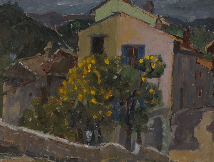 oil on boardwith title inscribed on Dawson Gallery label on reverse; with Jorgensen retrospective exhibition label on reverse