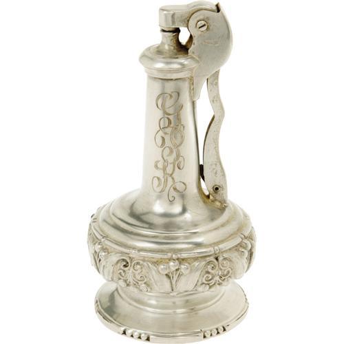 <B>Grace Kelly's Monogrammed Silver Table Lighter.</B></I> A decorative 4.5" sterling silver Ronson table lighter engraved with the initials "GPK," owned and used by the actress. In Excellent condition with very mild tarnishing, and still in working order.<I>Accompanied by LOA from LA Prop & Wardrobe Company.</B></I><BR><BR><b>Shipping:</b> Flat Material, Small (<a target="_blank" href="http://www.heritageauctions.com/common/shipping.php">view shipping information</a>)