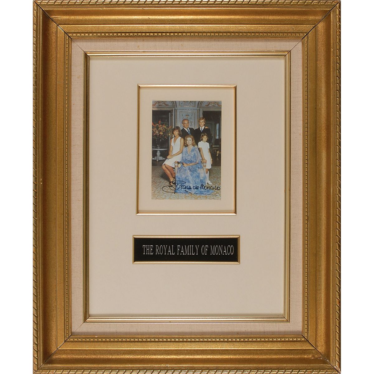 Color 4 x 5.75 paperstock photo of the royal family, signed in black felt tip, “Grace de Monaco.” Beautifully double-matted and framed to an overall size of 18 x 22. In fine condition. Accompanied by a certificate of authenticity from PSA/DNA.
