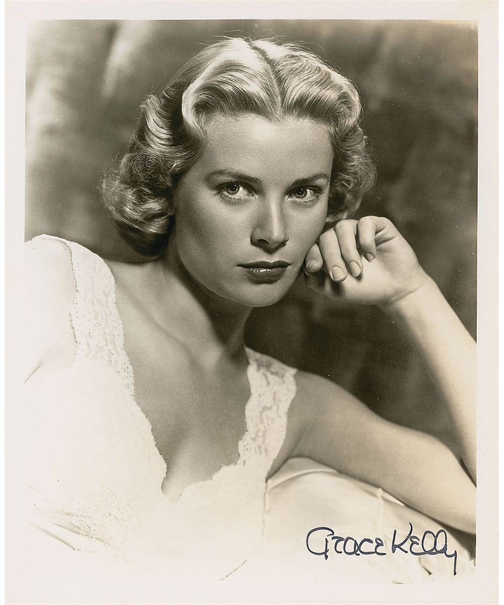 Beautiful glossy 8 x 10 photo of Kelly resting her soft cheek on a raised hand while in her prime, signed in the lower right in black felt tip. In fine condition. Accompanied by a full letter of authenticity from PSA/DNA.