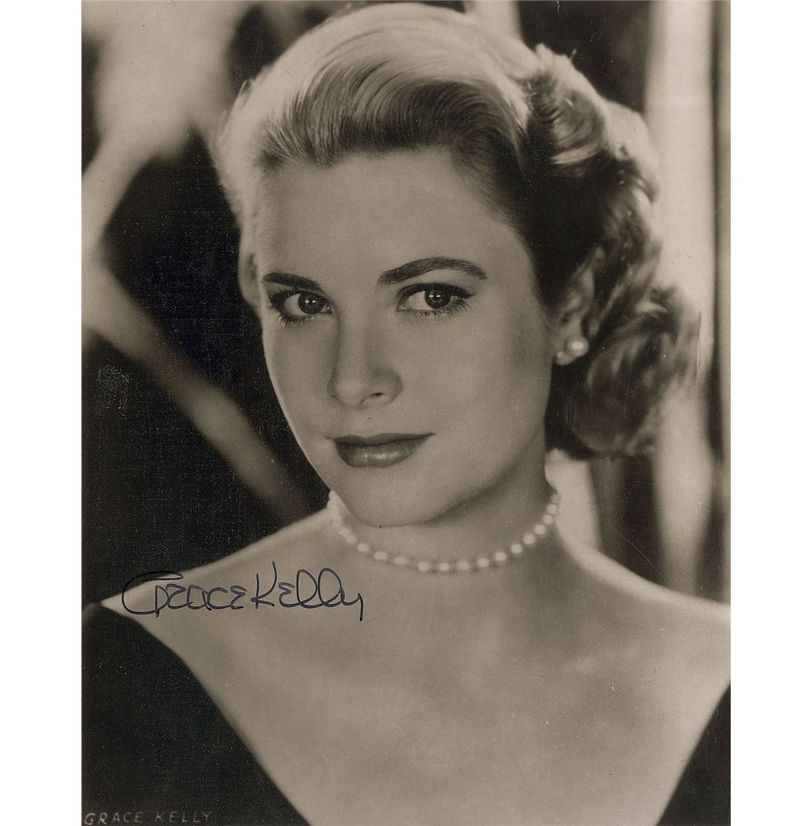 Attractive matte-finish 7.25 x 9.25 head-and-shoulders photo, signed in black felt tip, “Grace Kelly.” In fine condition, with slightly trimmed edges and some scattered light surface marks.