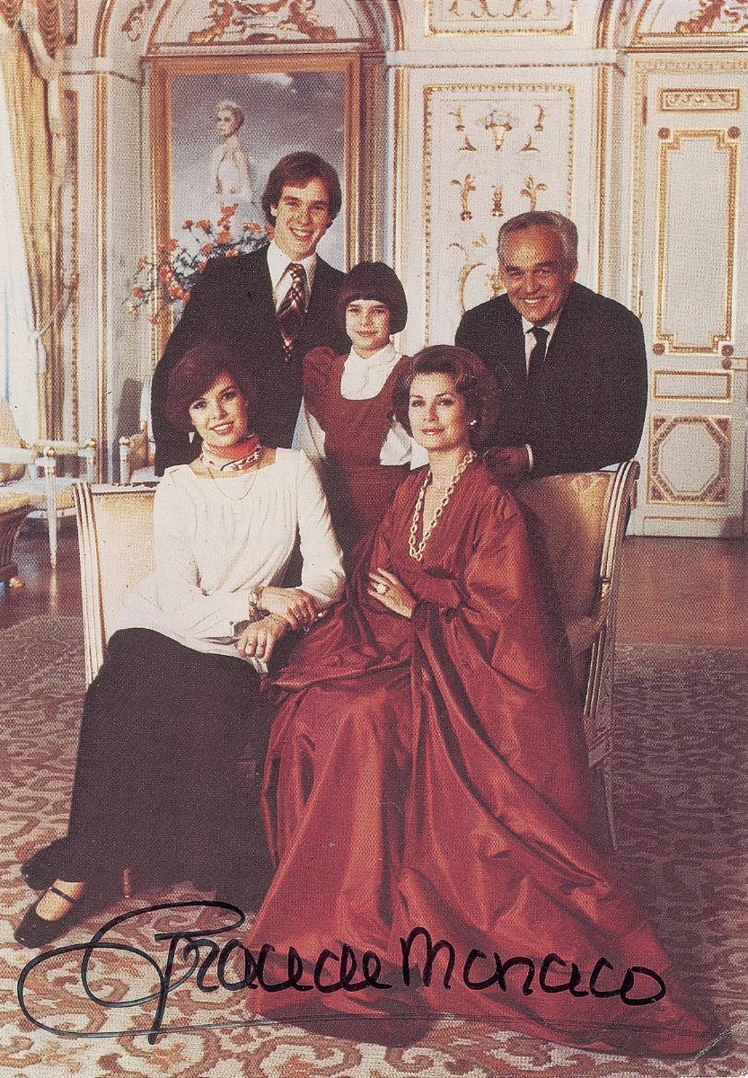 Color 4 x 6 paperstock photo of Princess Grace and her royal family, signed in black felt tip, “Grace de Monaco.” Slight scattered creases and a faint wrinkle to her forehead, otherwise fine condition.