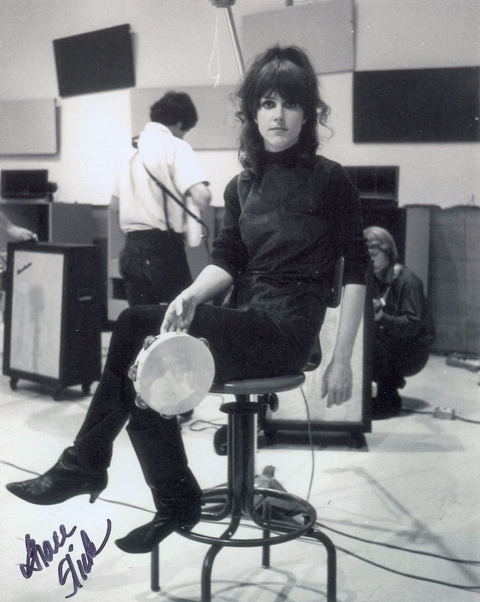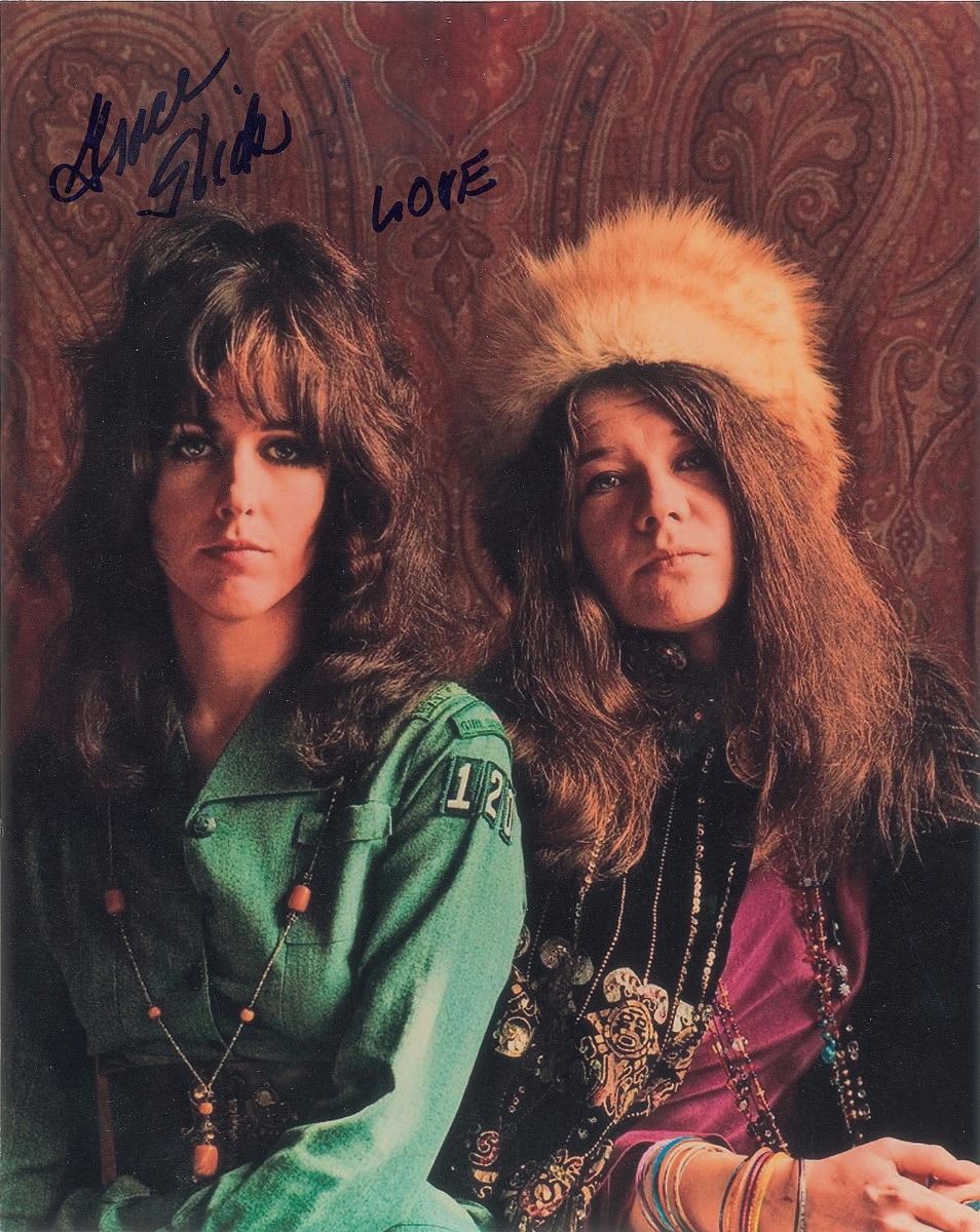 Three satin-finish photos of Grace Slick, 8 x 10 and 10 x 8, each signed in black felt tip, with Slick adding “Love” to one. In overall fine condition.