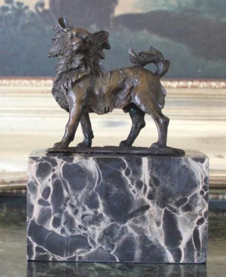 Graceful Chihuahua, Bronze Sculpture, After L. Carvin, 7 inH x 4 3/4inW x 2 3/4in D 8lbs. This bronze sculpture was produced using the Lost Wax casting method. The Lost Wax Cast method is the most precise metal casting technique in existence, ensuring exquisite detail of the original host model which is usually sculpted in clay or wax. This Lost Wax casting method is an extremely labor intensive and expensive process, but the end results produce a Heirloom Quality Masterpiece!