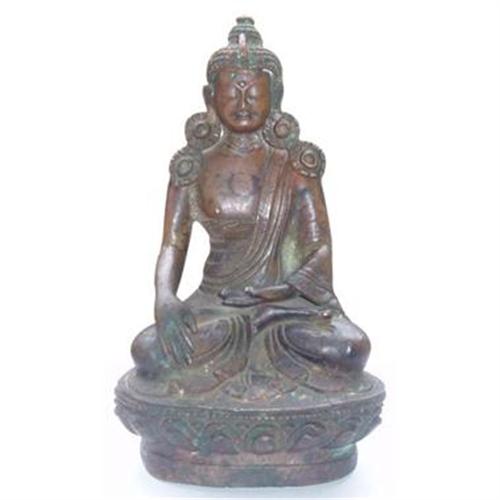 This antique is a piece of precious chinese seated Buddha statue forged with bronze from Tibet,China.Bronze is an alloy of copper, tin, and a small amount of lead.Its appearance signaled the advancement in human culture from the Stone Age to the Bronze Age.The Chinese people used rare and precious bronze to cast large quantities of ritual vessels, musical instruments,and weapons that were elegant in form, finely decorated, and clearly inscribed with Chinese characters.They affirm the artistic achievement of ancient China,and demonstrate how early Chinese used their ingenuity to create works incorporating both science and art from resources in nature.