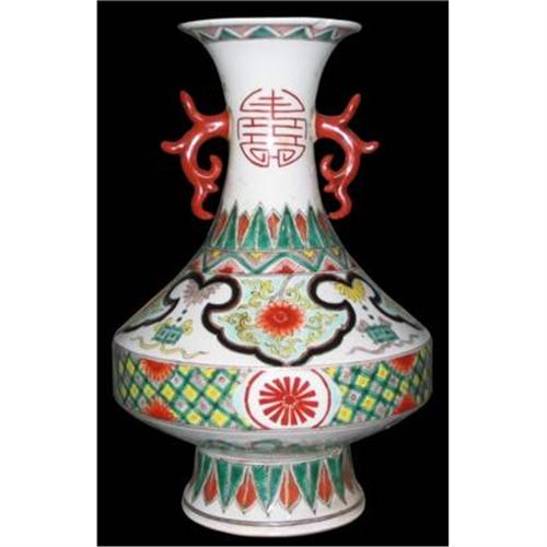 <tr><td>Title:Graceful Chinese Fencai Porcelain Vase</td></tr>