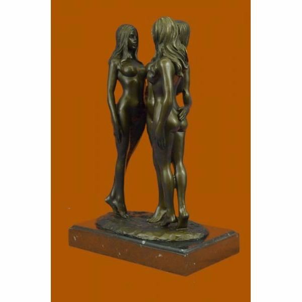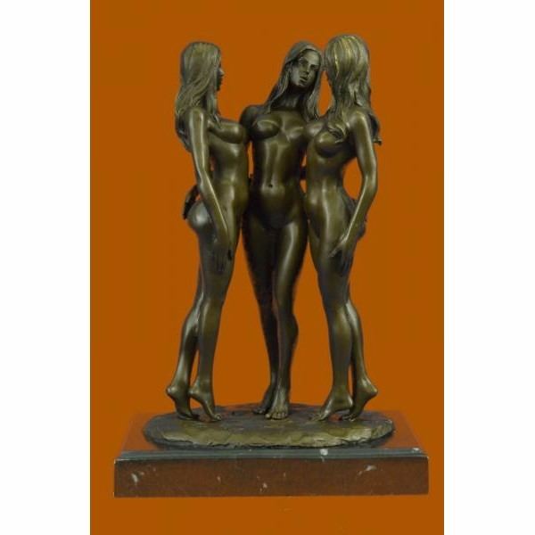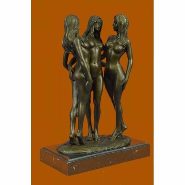 The three nude women bronze sculpture on base was cast by the traditional, Lost Wax Casting method of bronze. This labor intensive and time consuming method of casting bronze statues, ensure pristine quality and vivid detail. We Offers a large selection of bronze statues and bronze decoration perfect for indoor and outdoor use. Bronze Dimensions with Marble Base: Height 12 X Width 8 inches. Weight: 12 LBS.