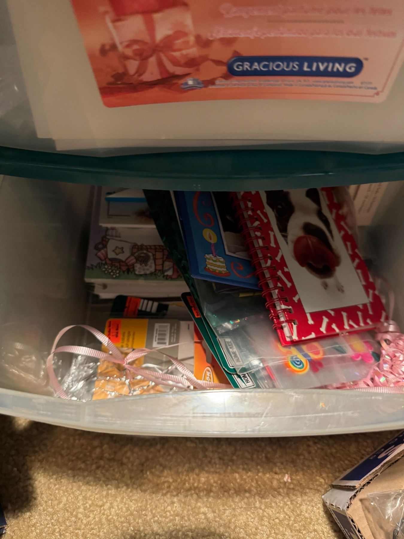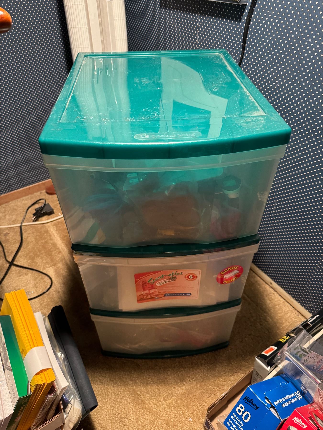 Gracious, living storage drawers, and contents, crafting and cords
