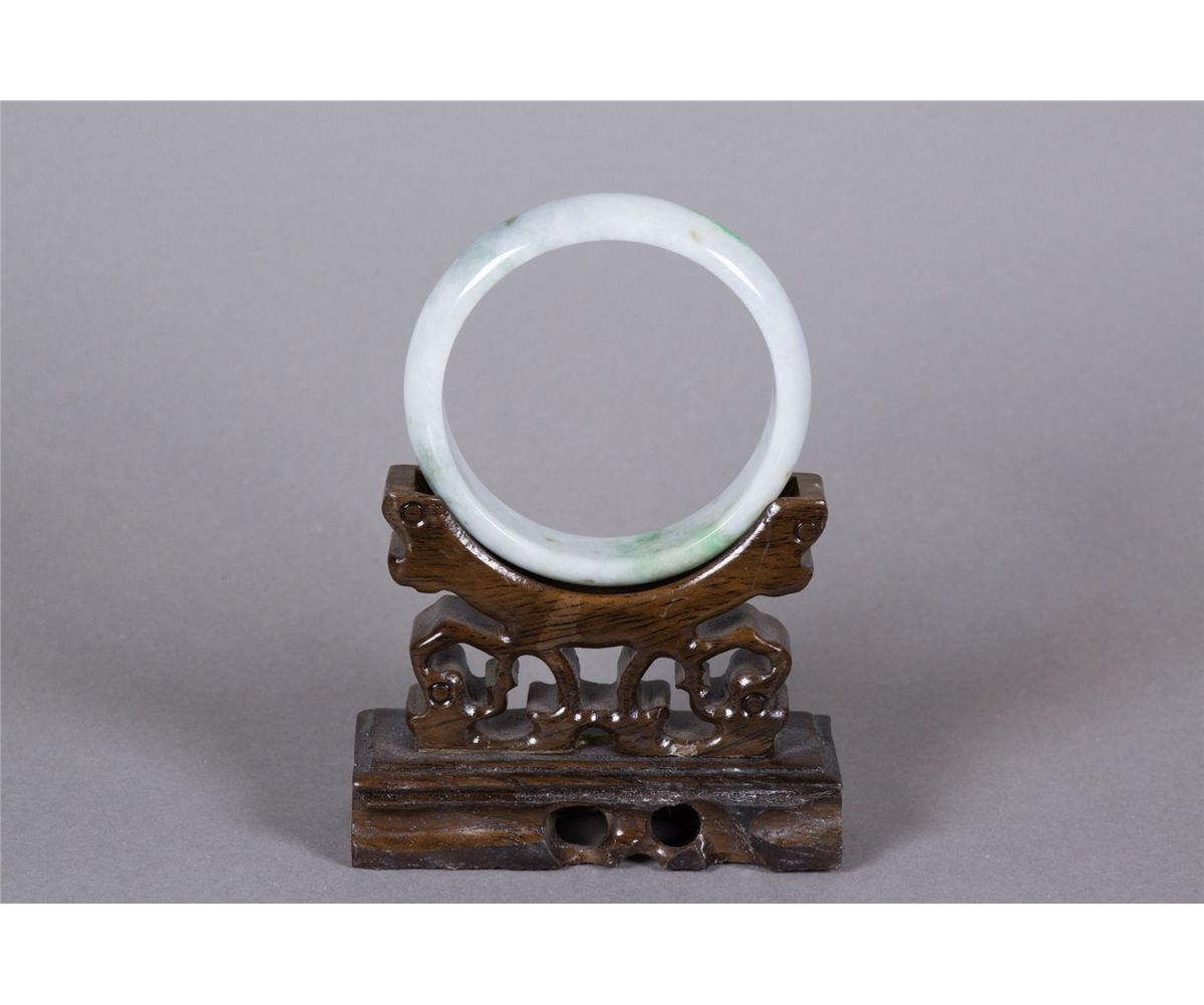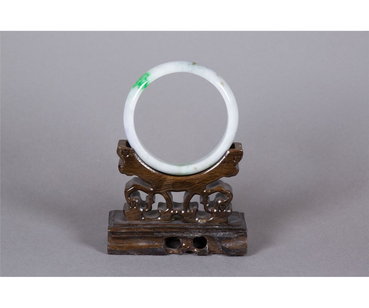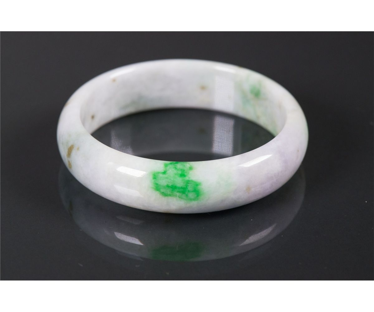 Burmese Jadeite bangle Grade A; rounded outside and flatten inside; of apple green tone; D: 7.5 cm, Inner D: 6.5 cm, 42 grams, Density 3.32