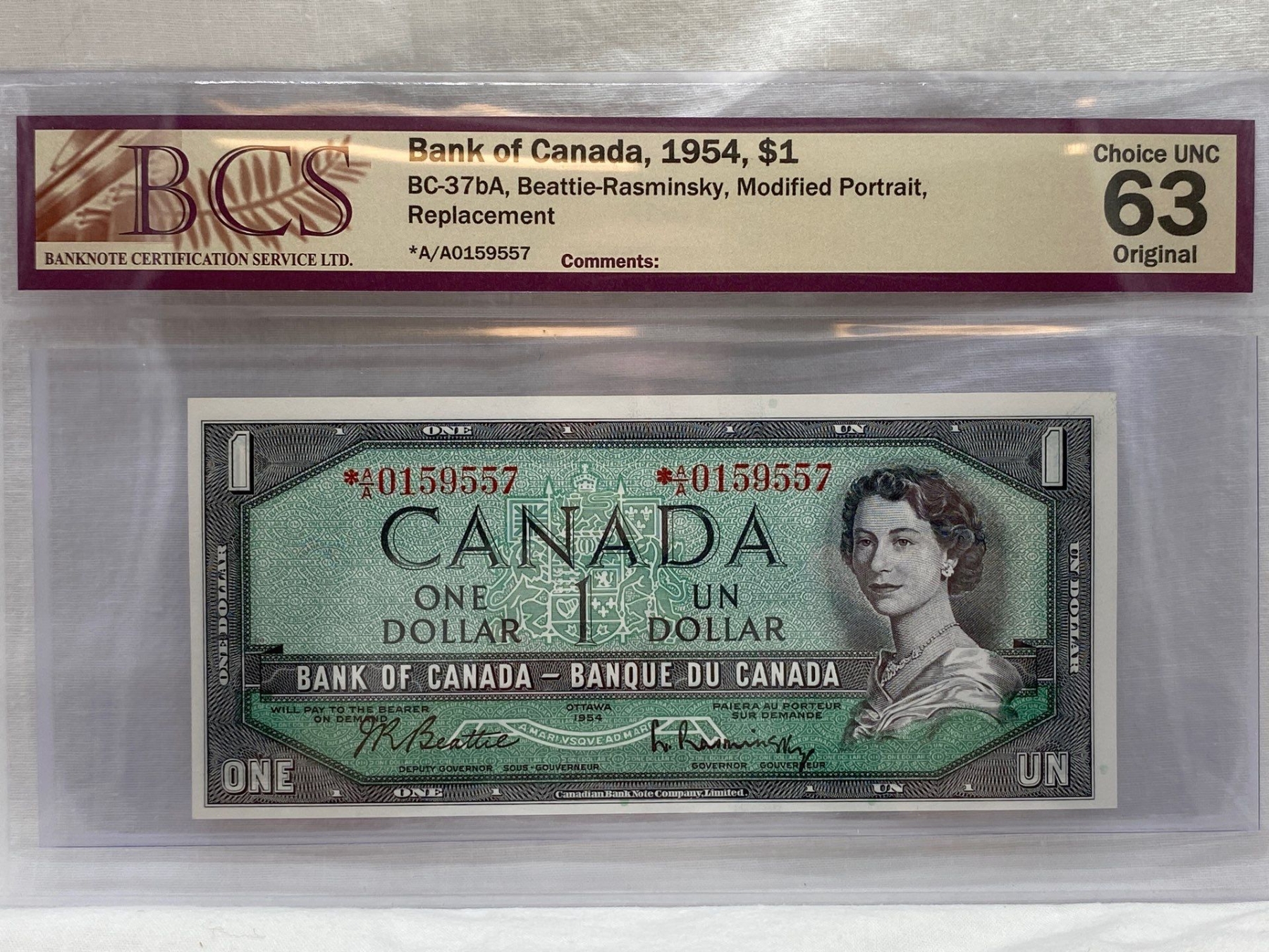Graded Canadian 1954 Mod. Portrait $1 Choice UNC Prefix: *A/A