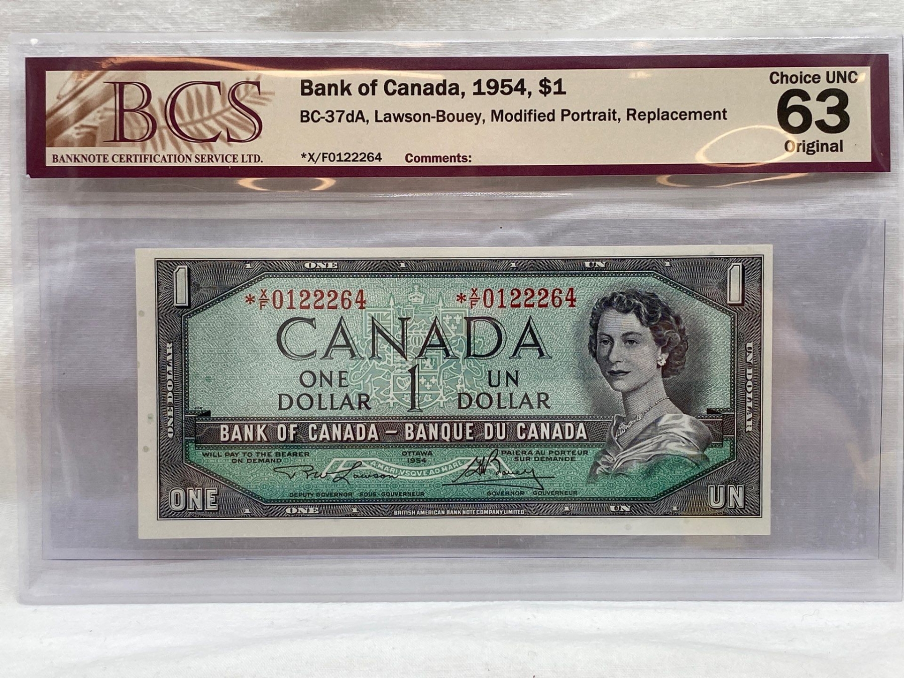 Graded Canadian 1954 Mod. Portrait $1 Choice UNC Prefix: *X/F
