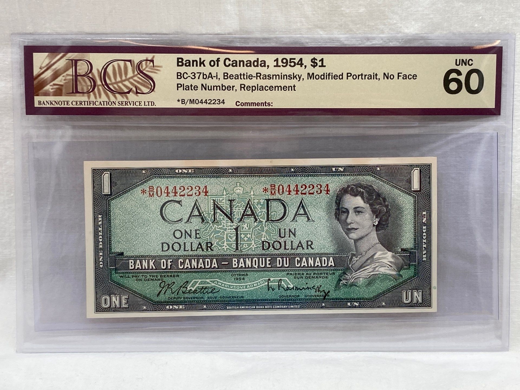 Graded Canadian 1954 Mod. Portrait $1 UNC Prefix: *B/M