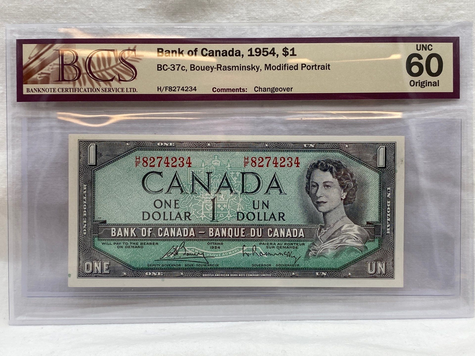 Graded Canadian 1954 Mod. Portrait $1 UNC Prefix: H/F