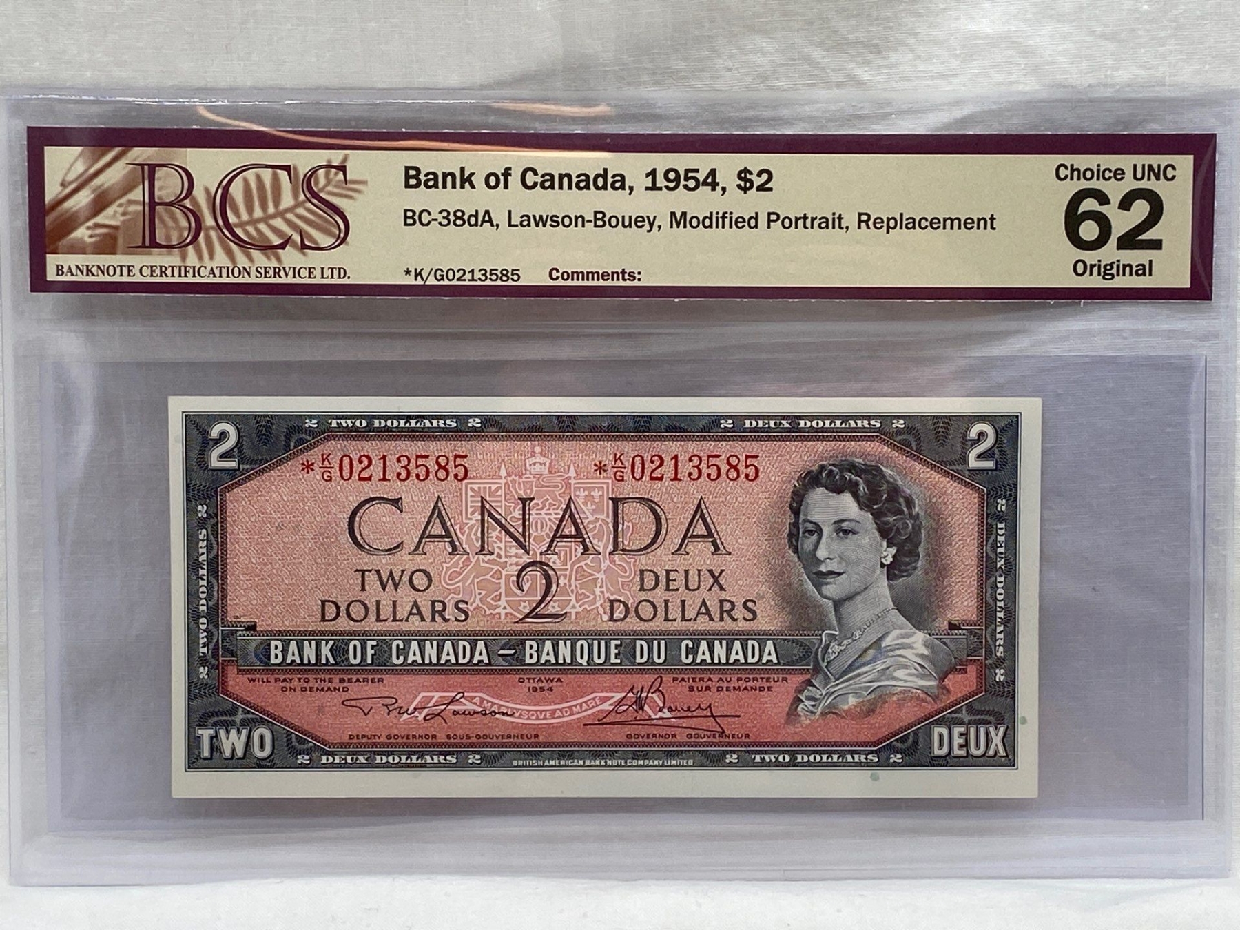 Graded Canadian 1954 Mod. Portrait $2 Choice UNC Prefix: *K/G