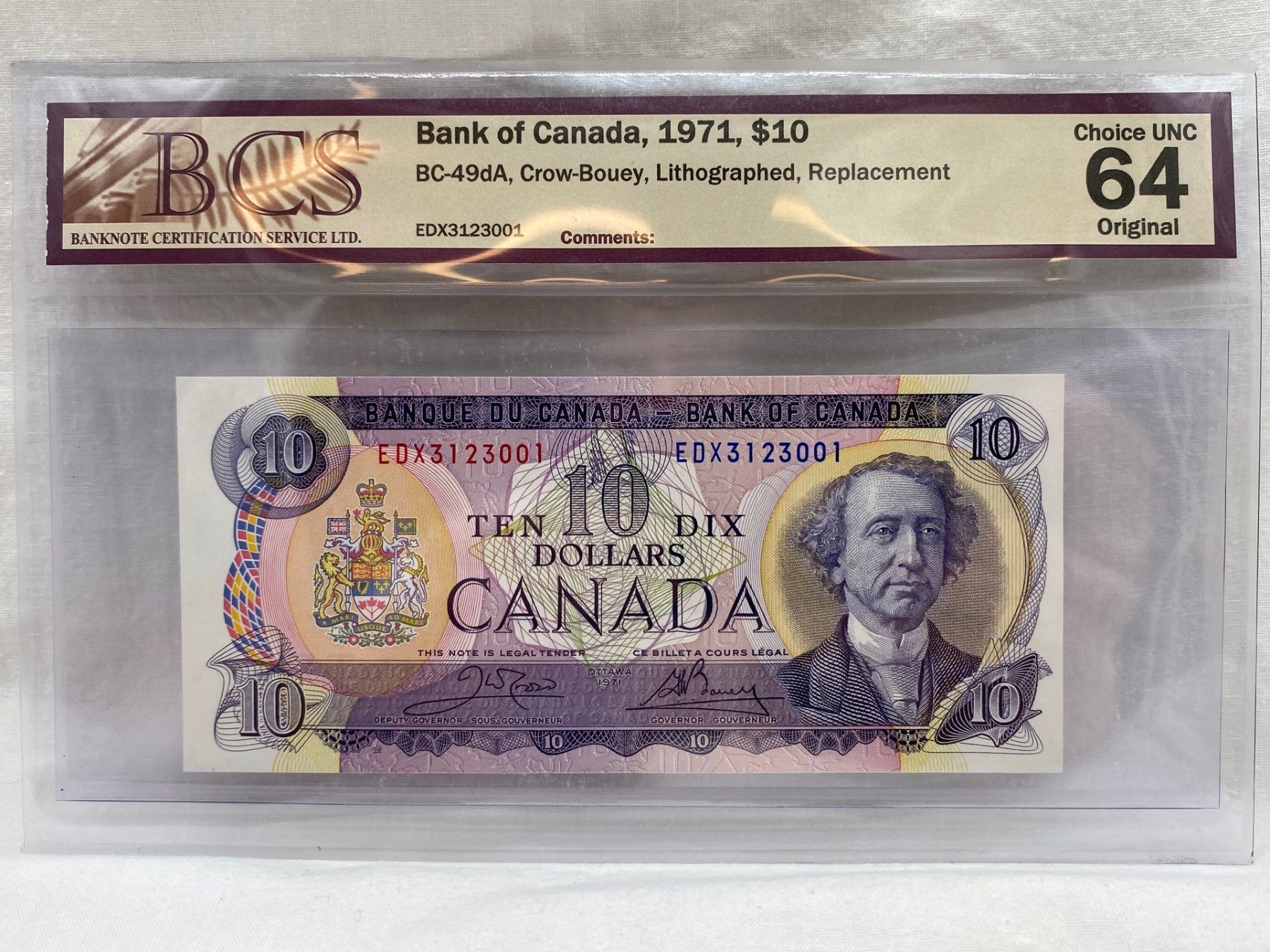 Graded Canadian 1971 $10 Choice UNC Prefix: EDX