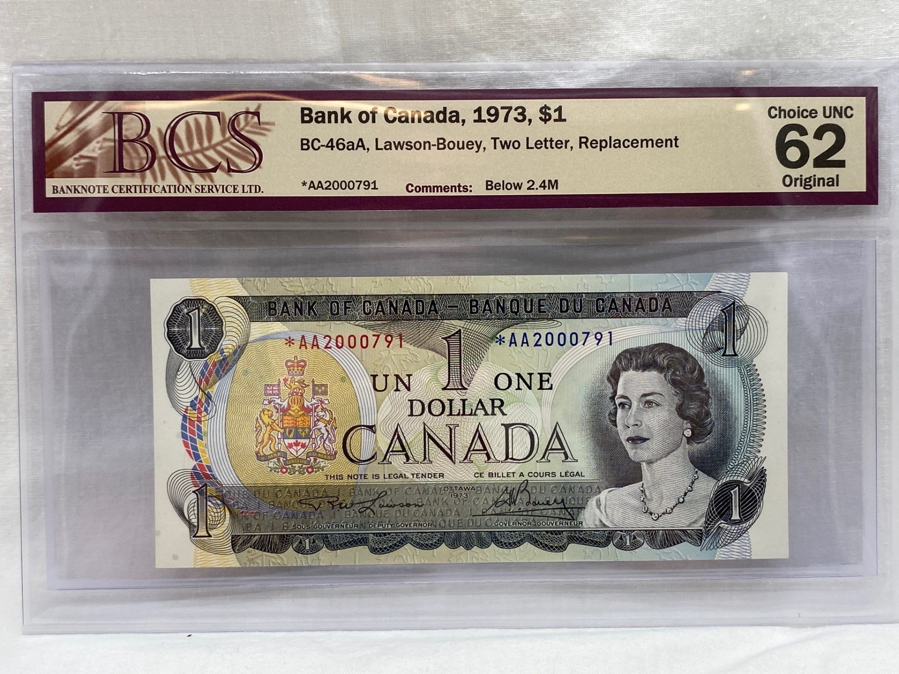 Graded Canadian 1973 $1 Choice UNC Prefix: *AA