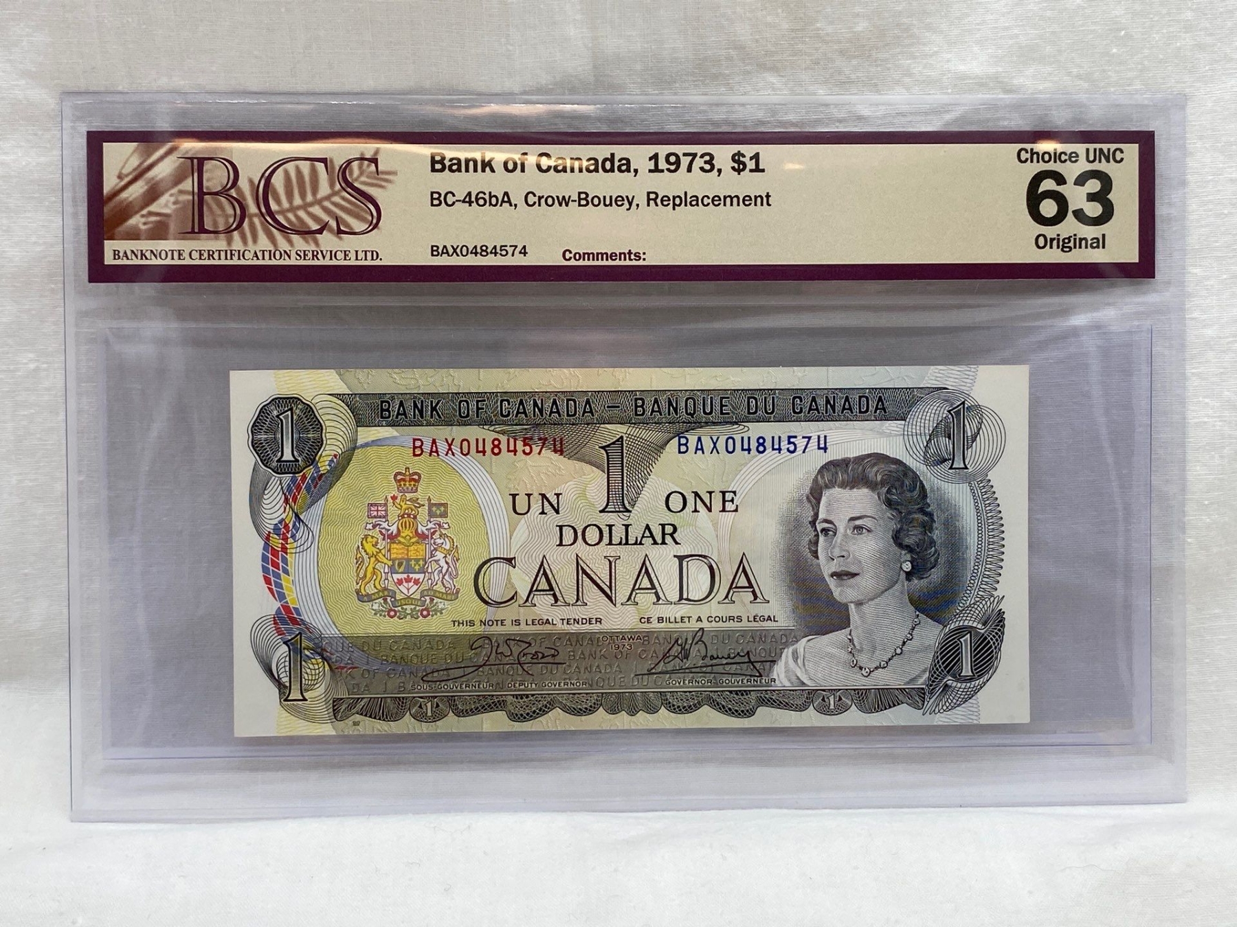 Graded Canadian 1973 $1 Choice UNC Prefix: BAX